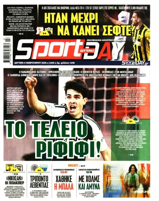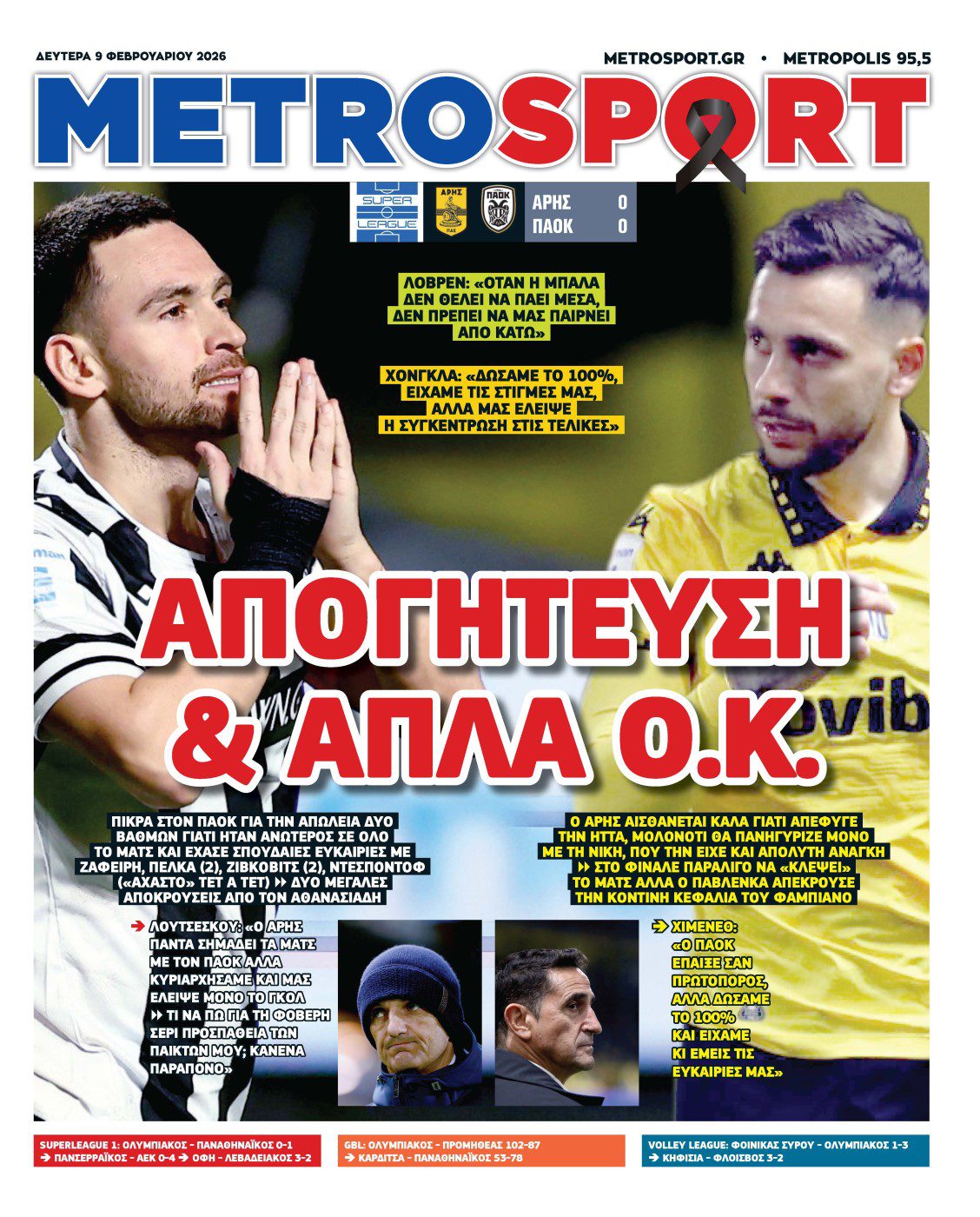 Πρωτοσέλιδα αθλητικών εφημερίδων για την Δευτέρα 9 Φεβρουαρίου 2026.