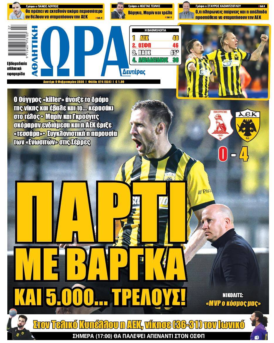 Πρωτοσέλιδα αθλητικών εφημερίδων για την Δευτέρα 9 Φεβρουαρίου 2026