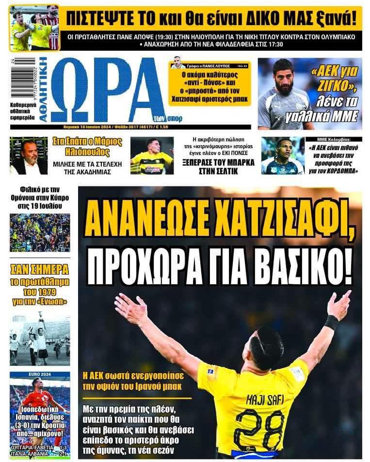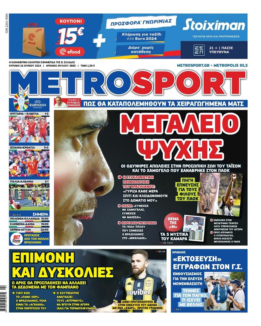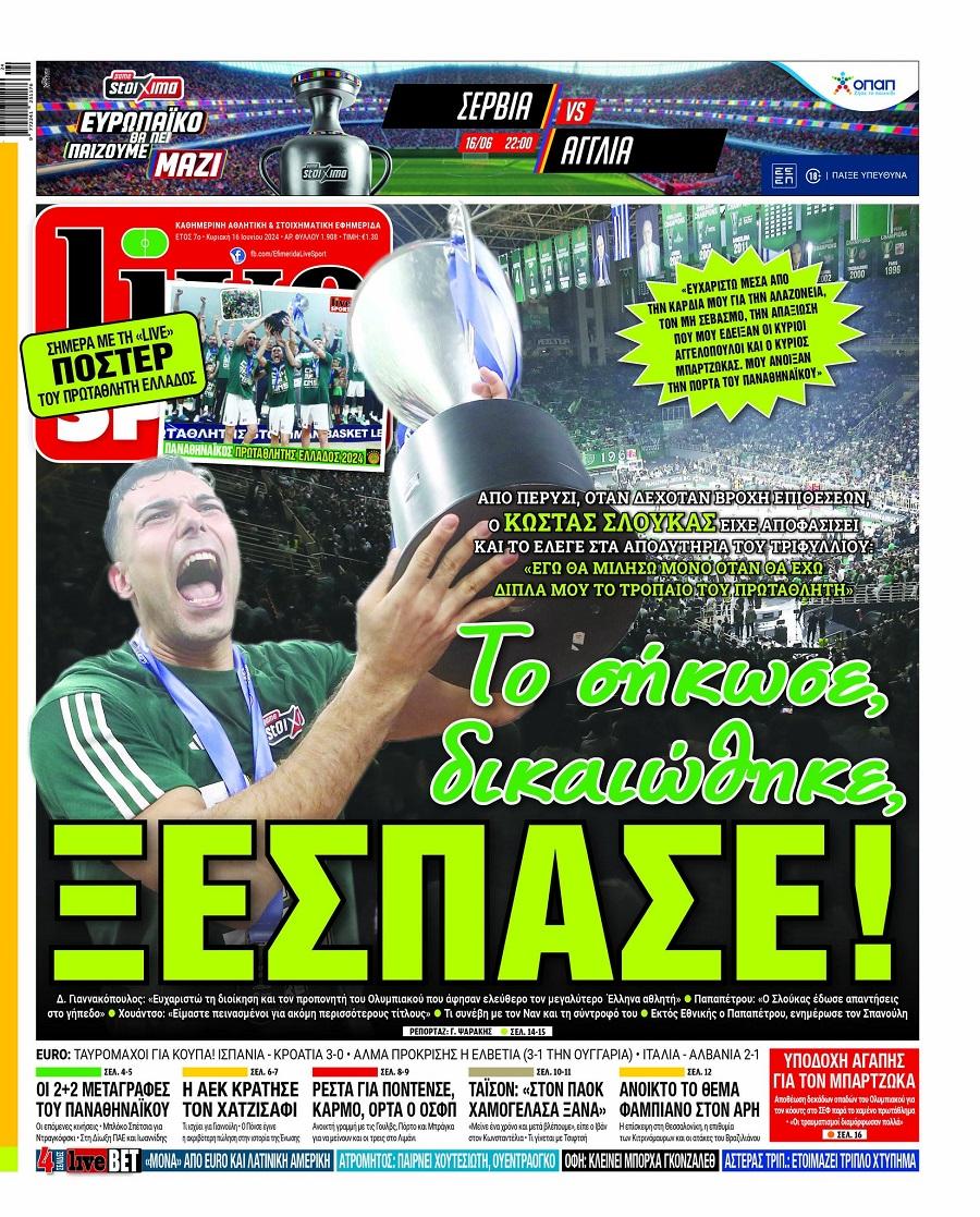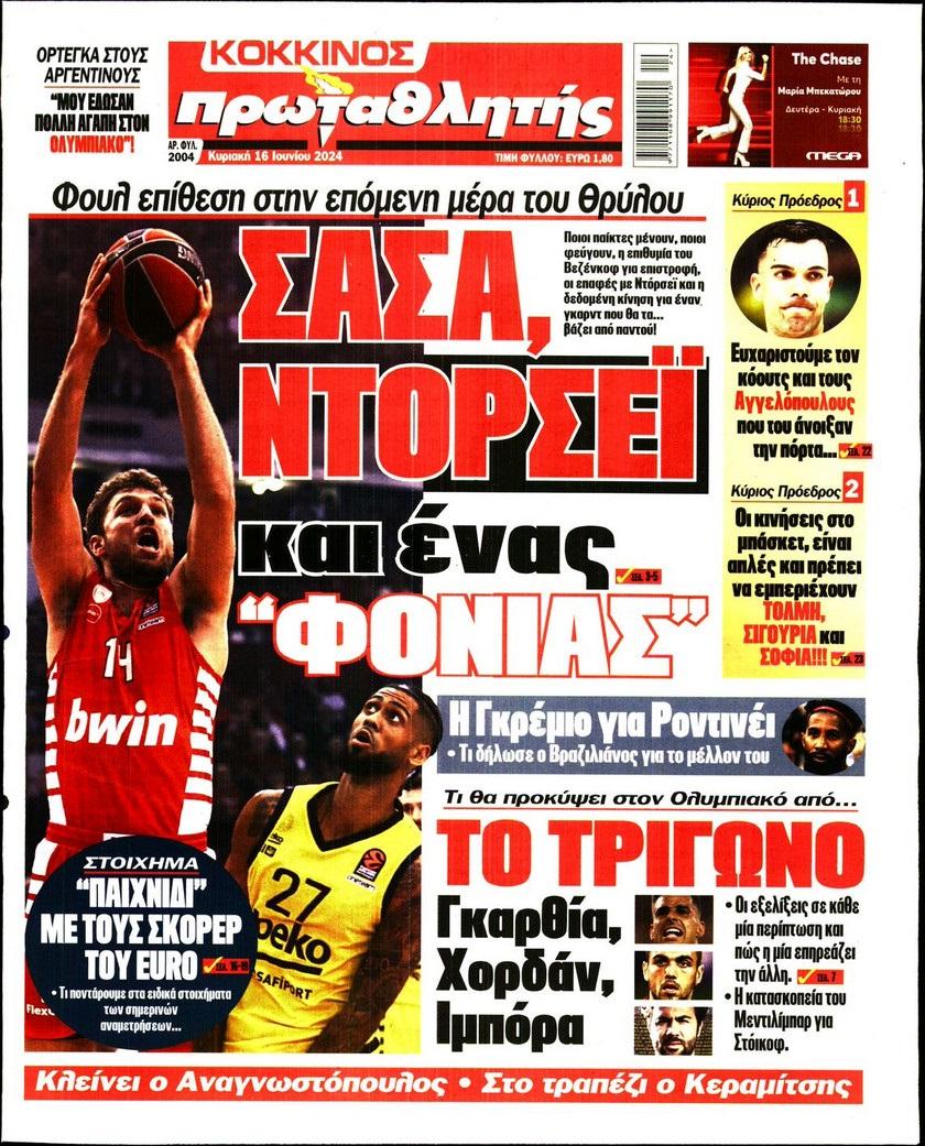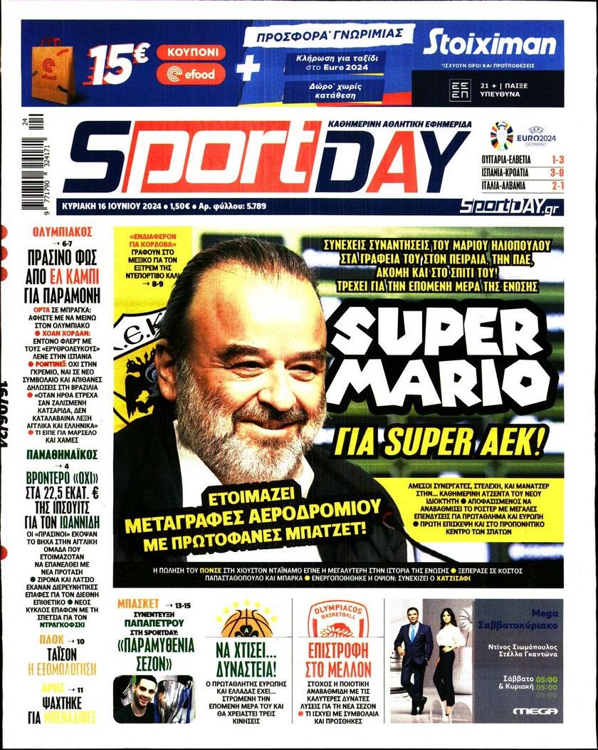 Πρωτοσέλιδα αθλητικών εφημερίδων για την Κυριακή 16 Ιουνίου 2024
