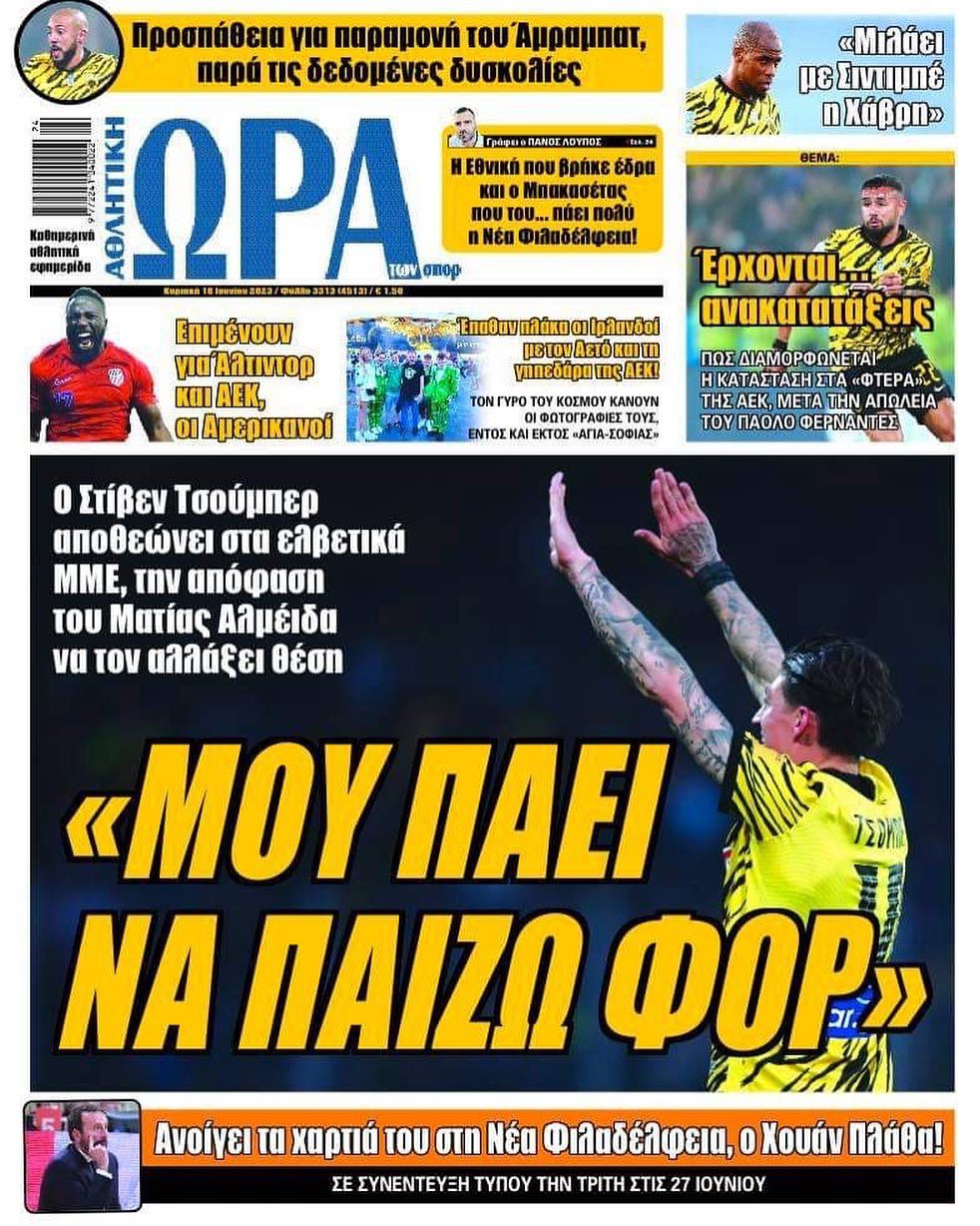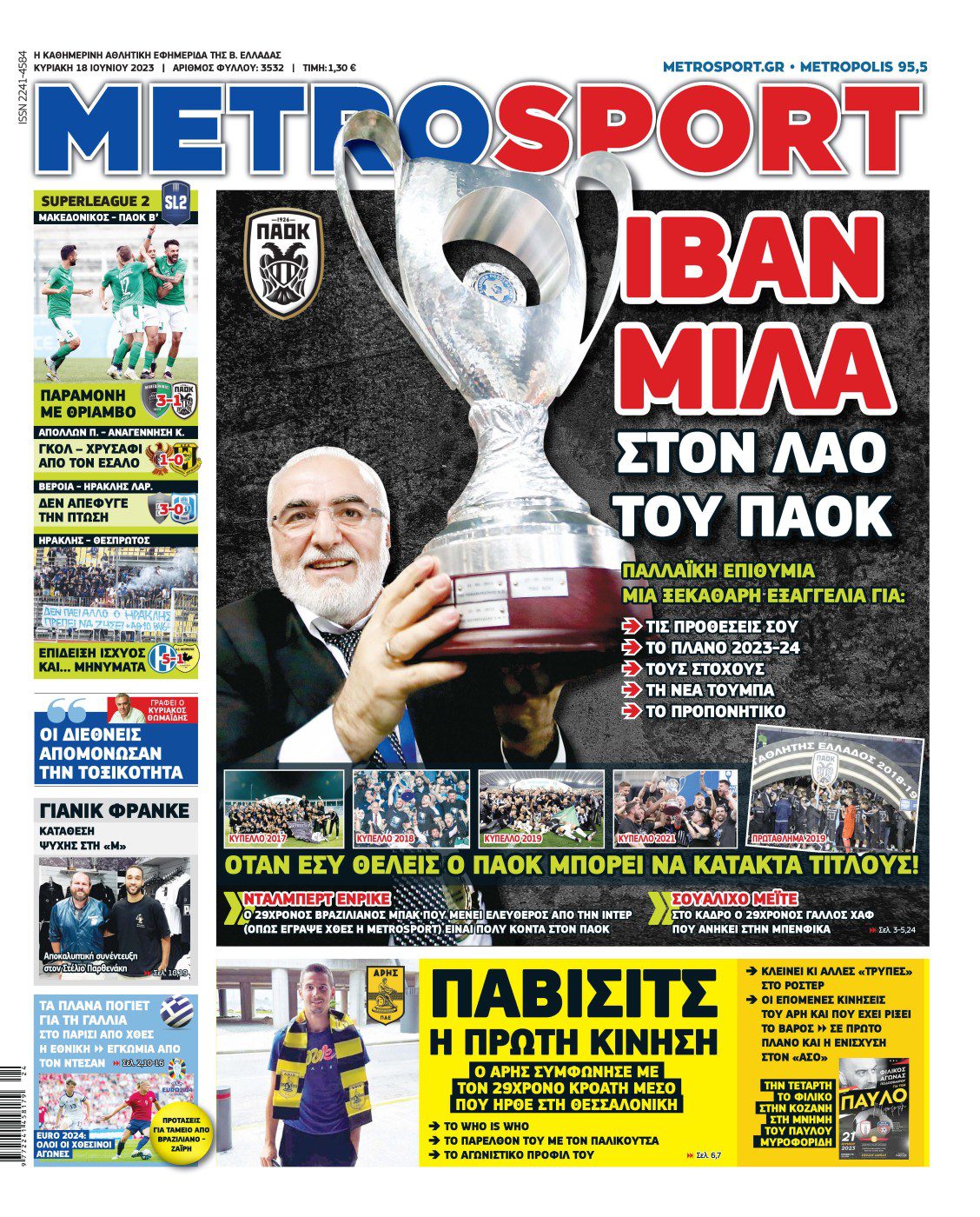 Πρωτοσέλιδα αθλητικών εφημερίδων για την Κυριακή 18 Ιουνίου 2023