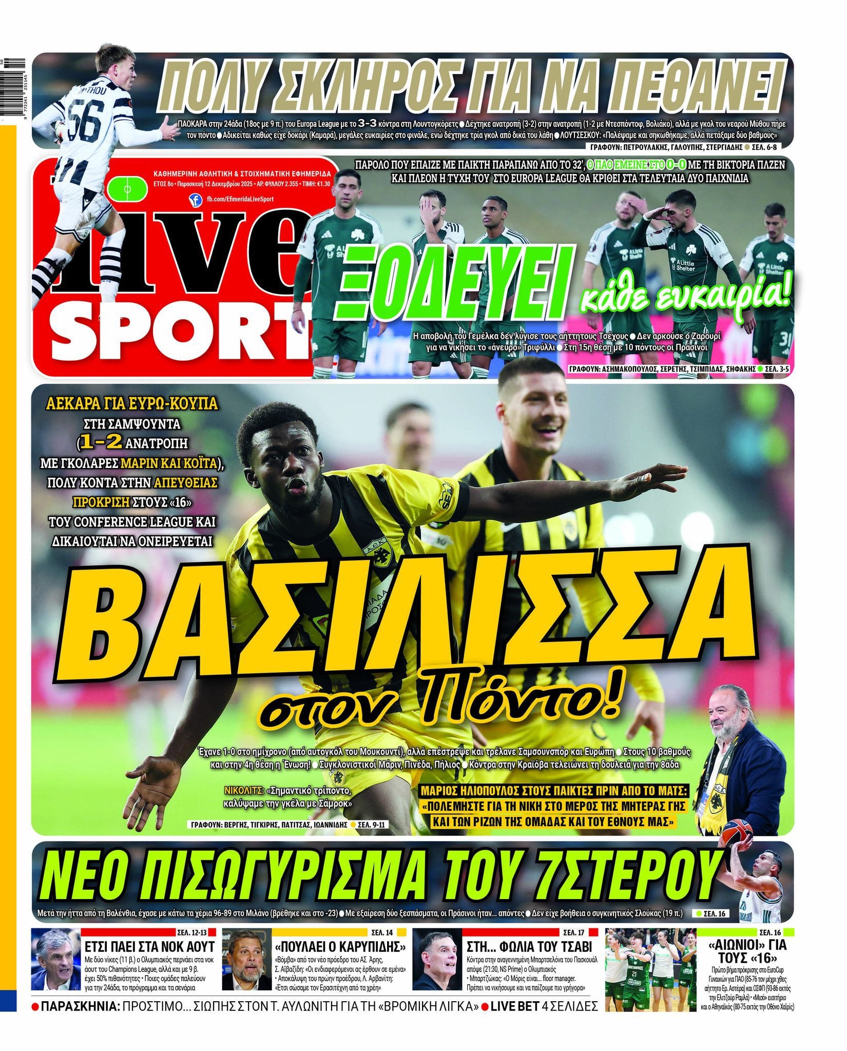Πρωτοσέλιδα αθλητικών εφημερίδων για την Παρασκευή 12 Δεκεμβρίου 2025