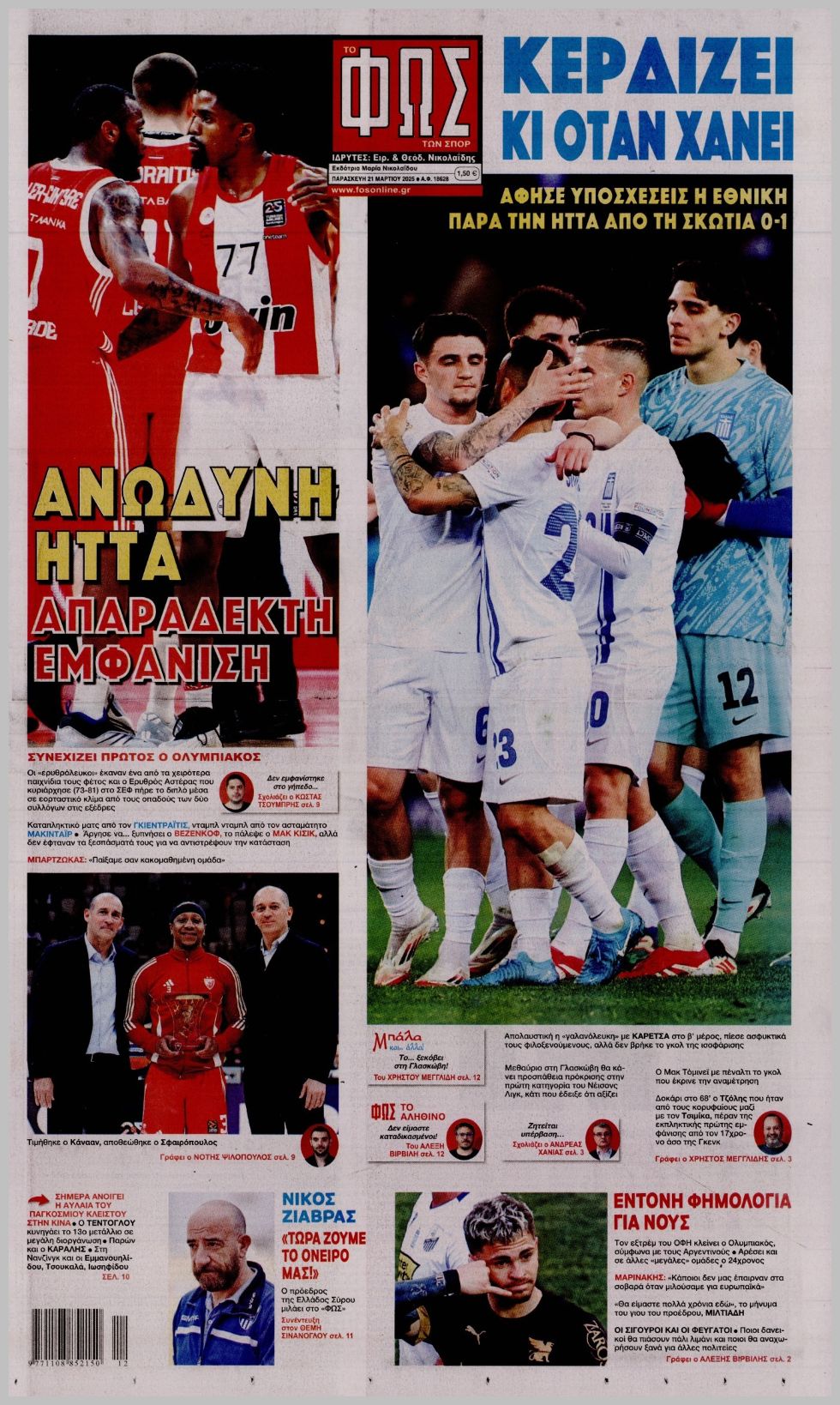 Πρωτοσέλιδα αθλητικών εφημερίδων για την Παρασκευή 21 Μαρτίου 2025