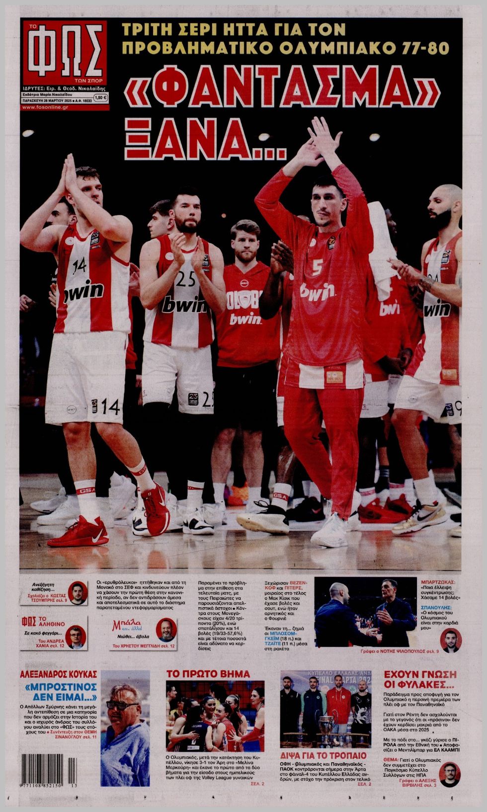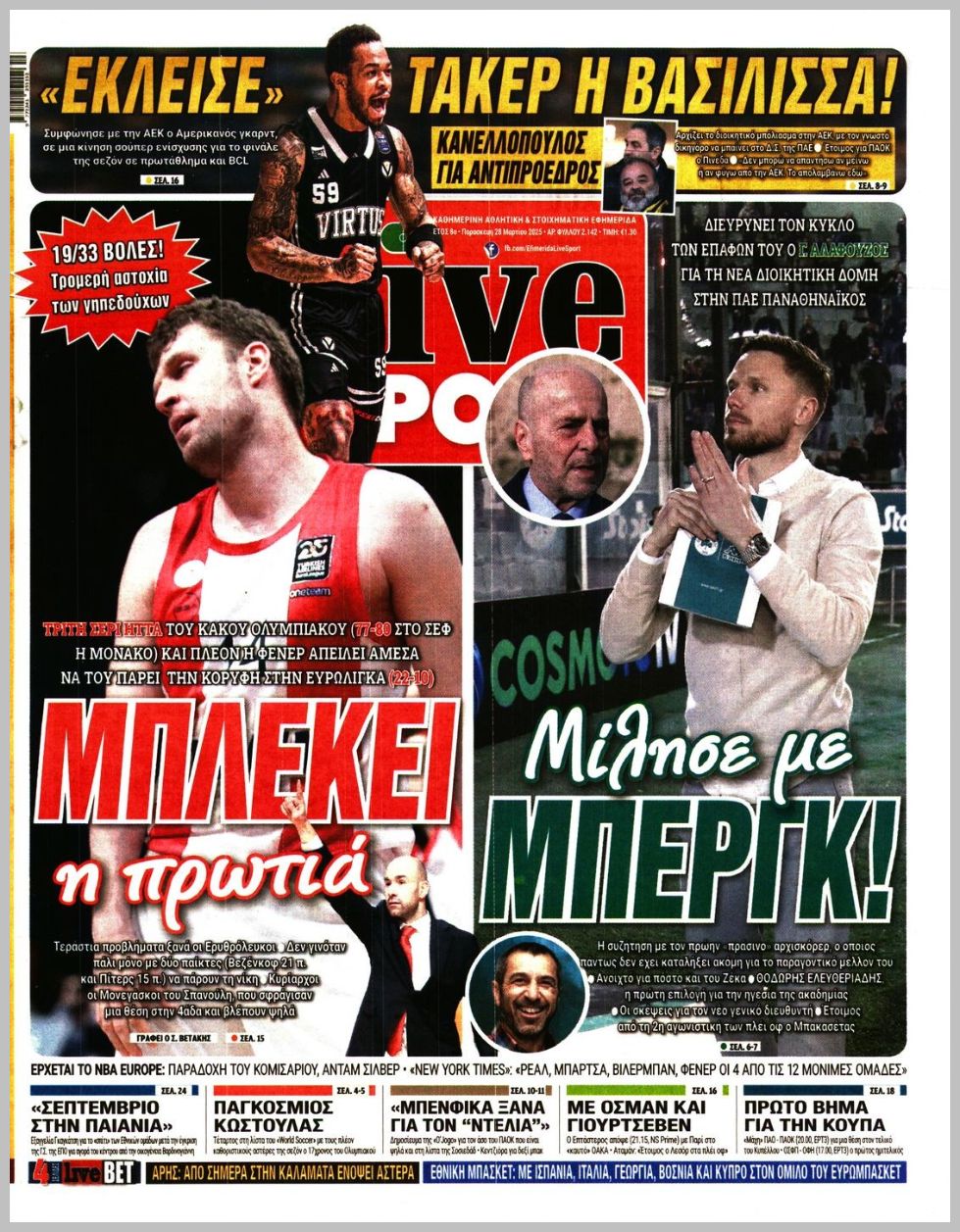Πρωτοσέλιδα αθλητικών εφημερίδων για την Παρασκευή 28 Μαρτίου 2025