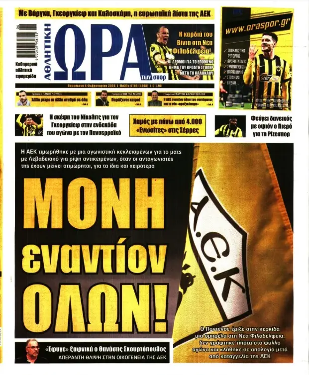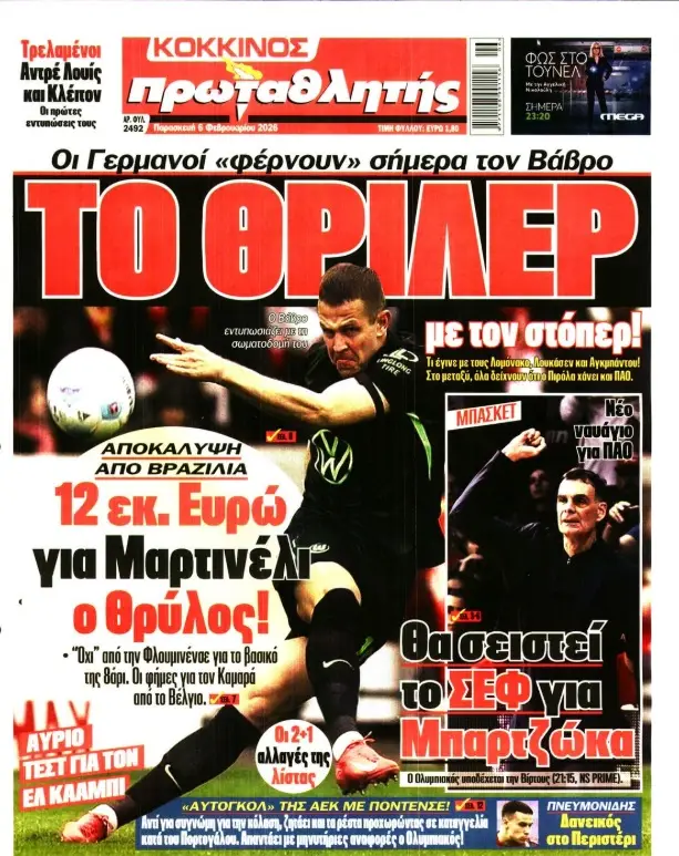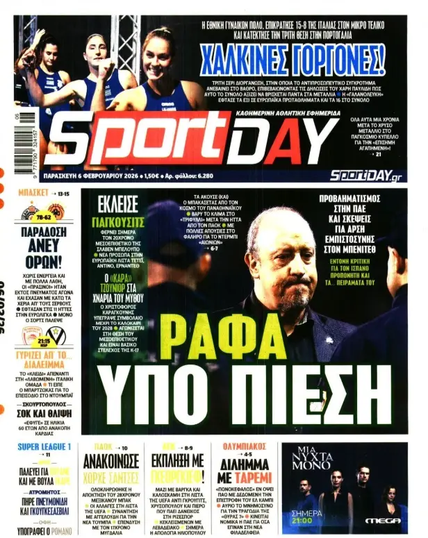 Πρωτοσέλιδα αθλητικών εφημερίδων για την Παρασκευή 6 Φεβρουαρίου 2026