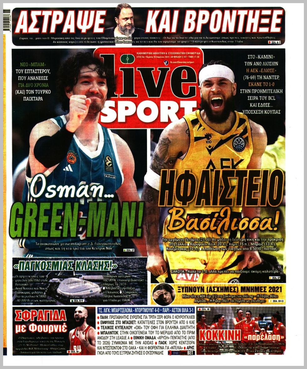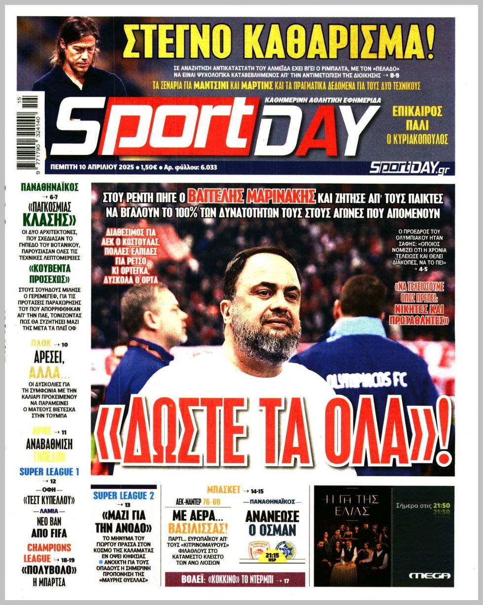 Πρωτοσέλιδα αθλητικών εφημερίδων για την Πέμπτη 10 Απριλίου 2025