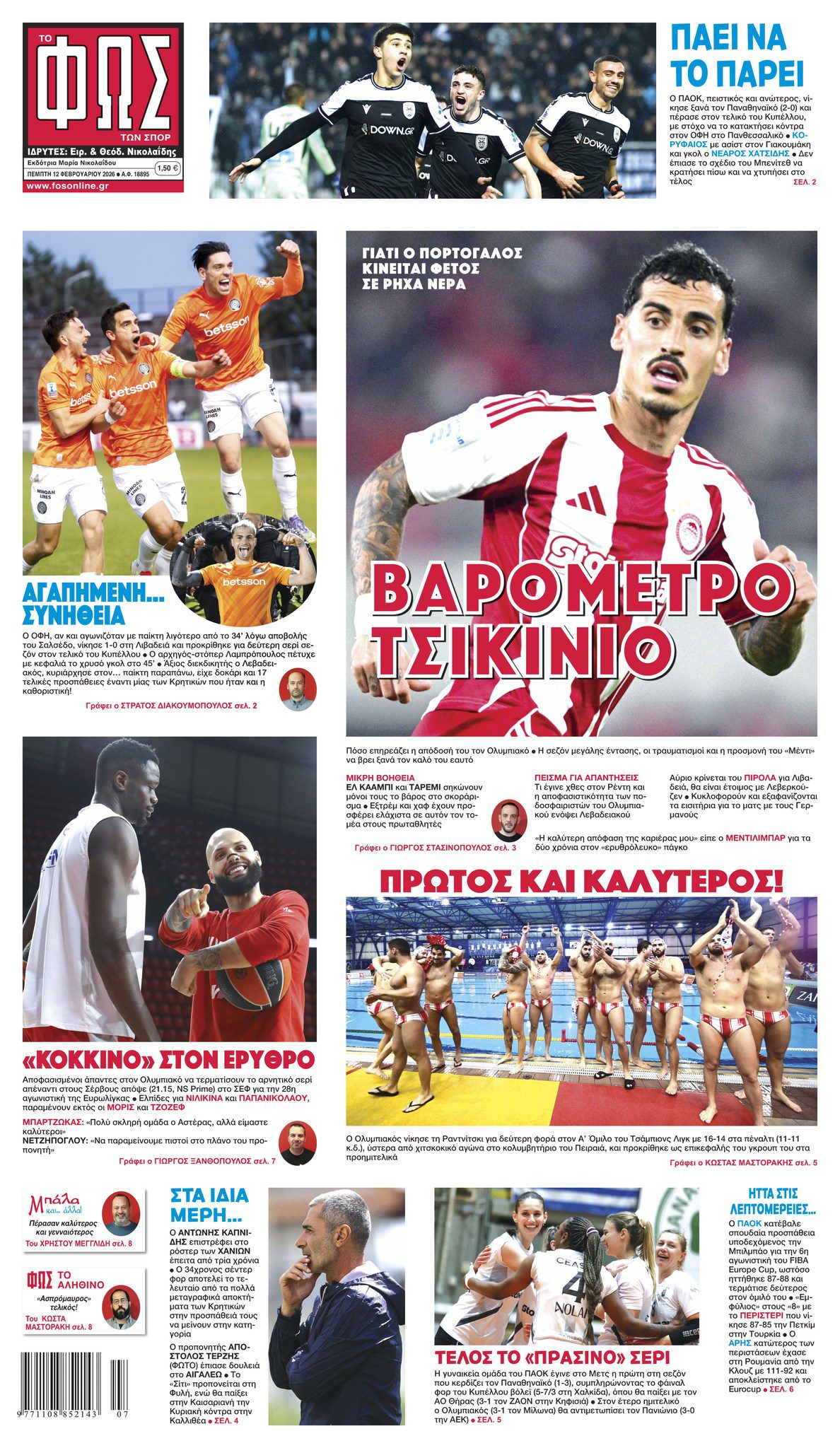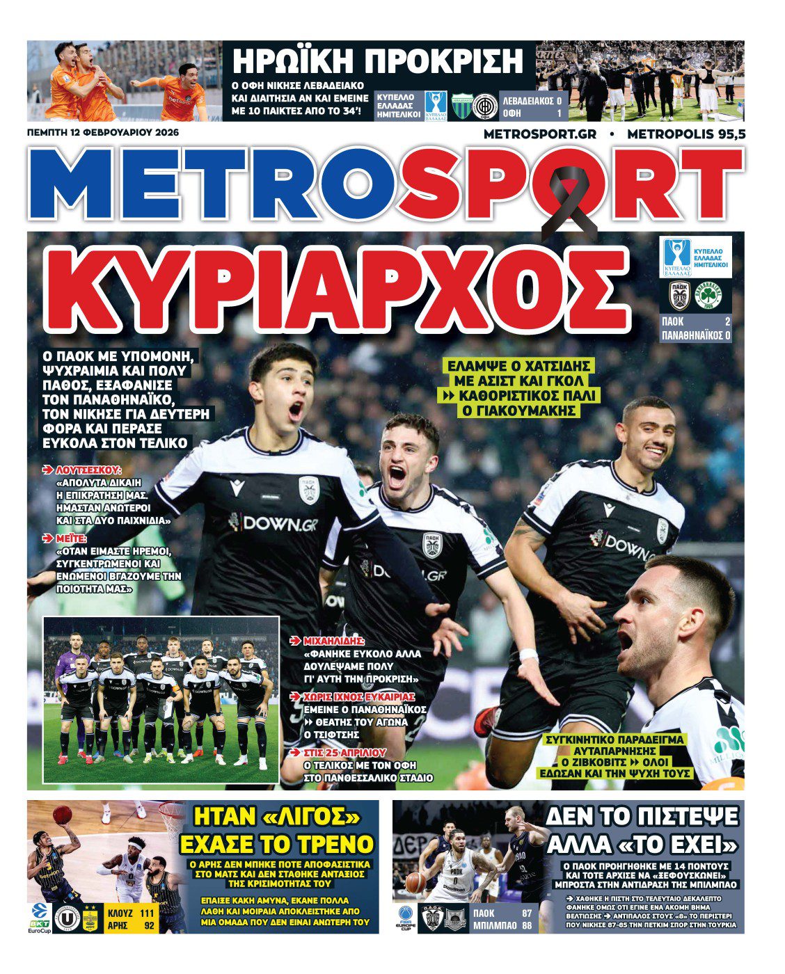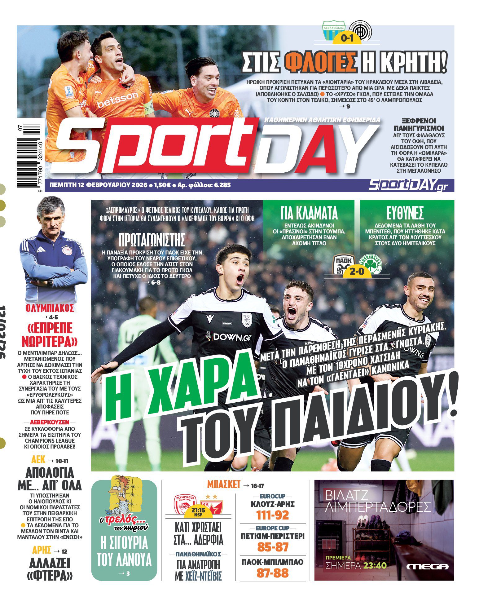 Πρωτοσέλιδα αθλητικών εφημερίδων για την Πέμπτη 12 Φεβρουαρίου 2026