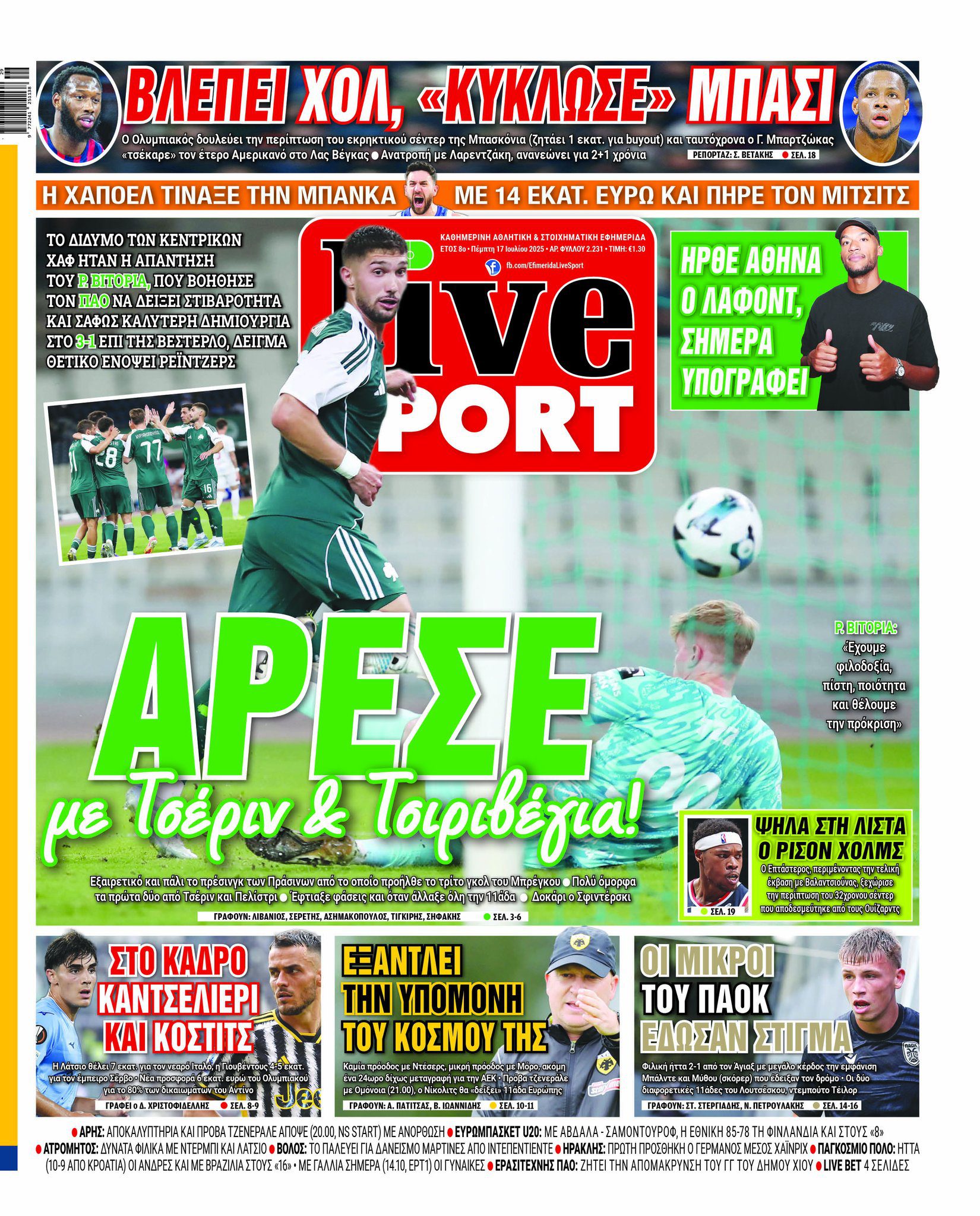 Πρωτοσέλιδα αθλητικών εφημερίδων για την Πέμπτη 17 Ιουλίου 2025