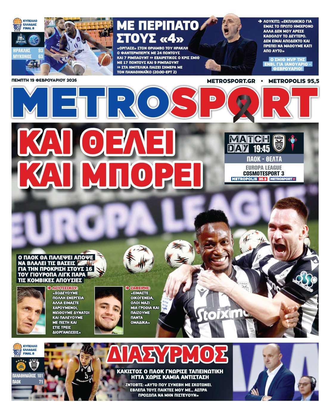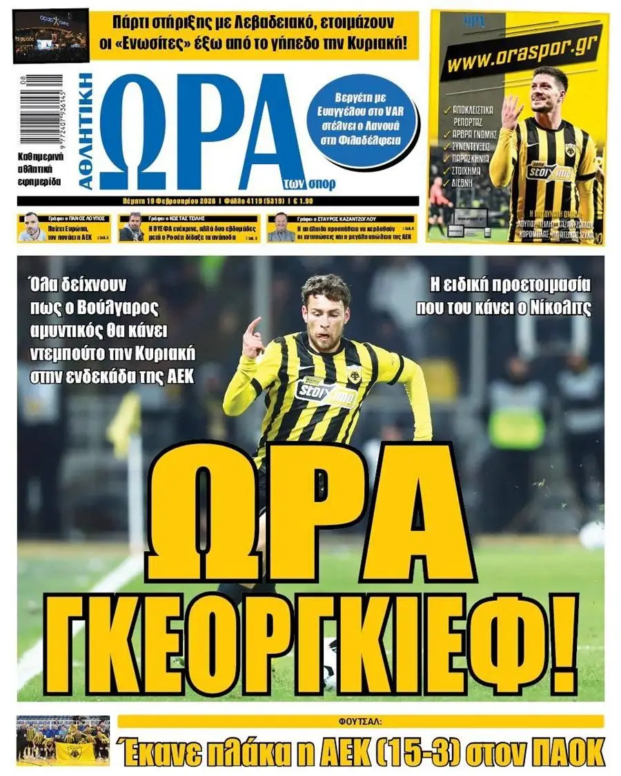 Πρωτοσέλιδα αθλητικών εφημερίδων για την Πέμπτη 19 Φεβρουαρίου 2026