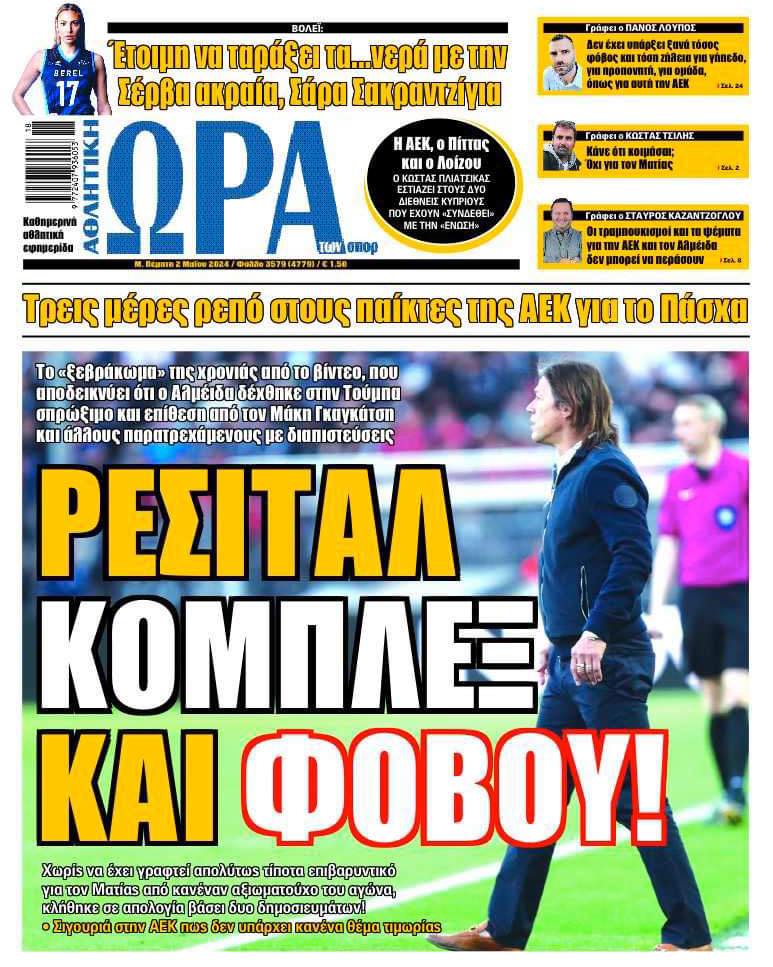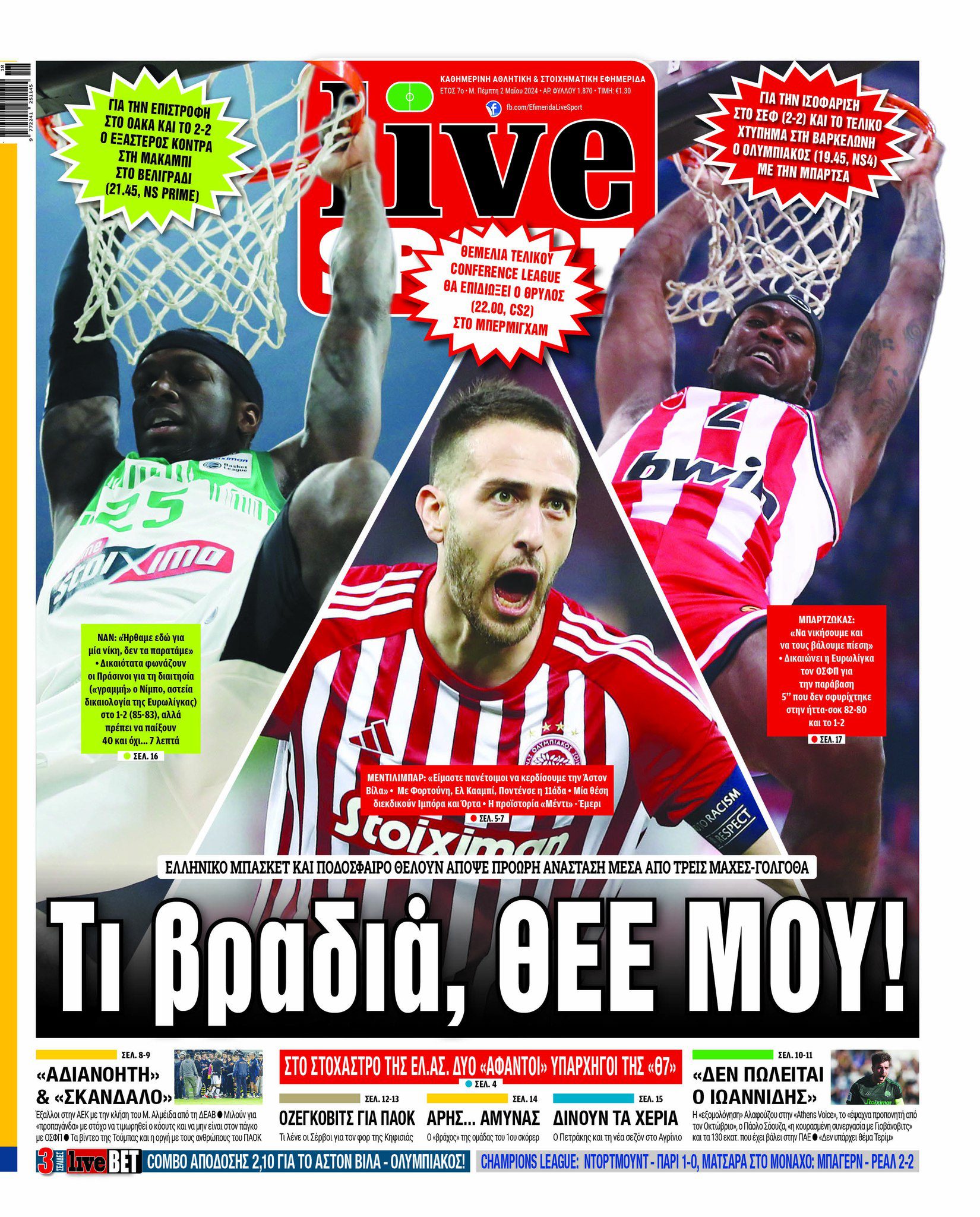Πρωτοσέλιδα αθλητικών εφημερίδων για την Πέμπτη 2 Μαΐου 2024