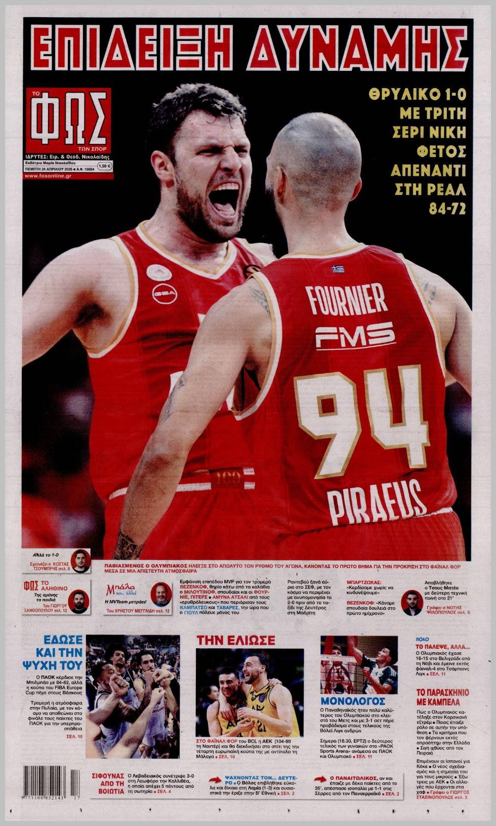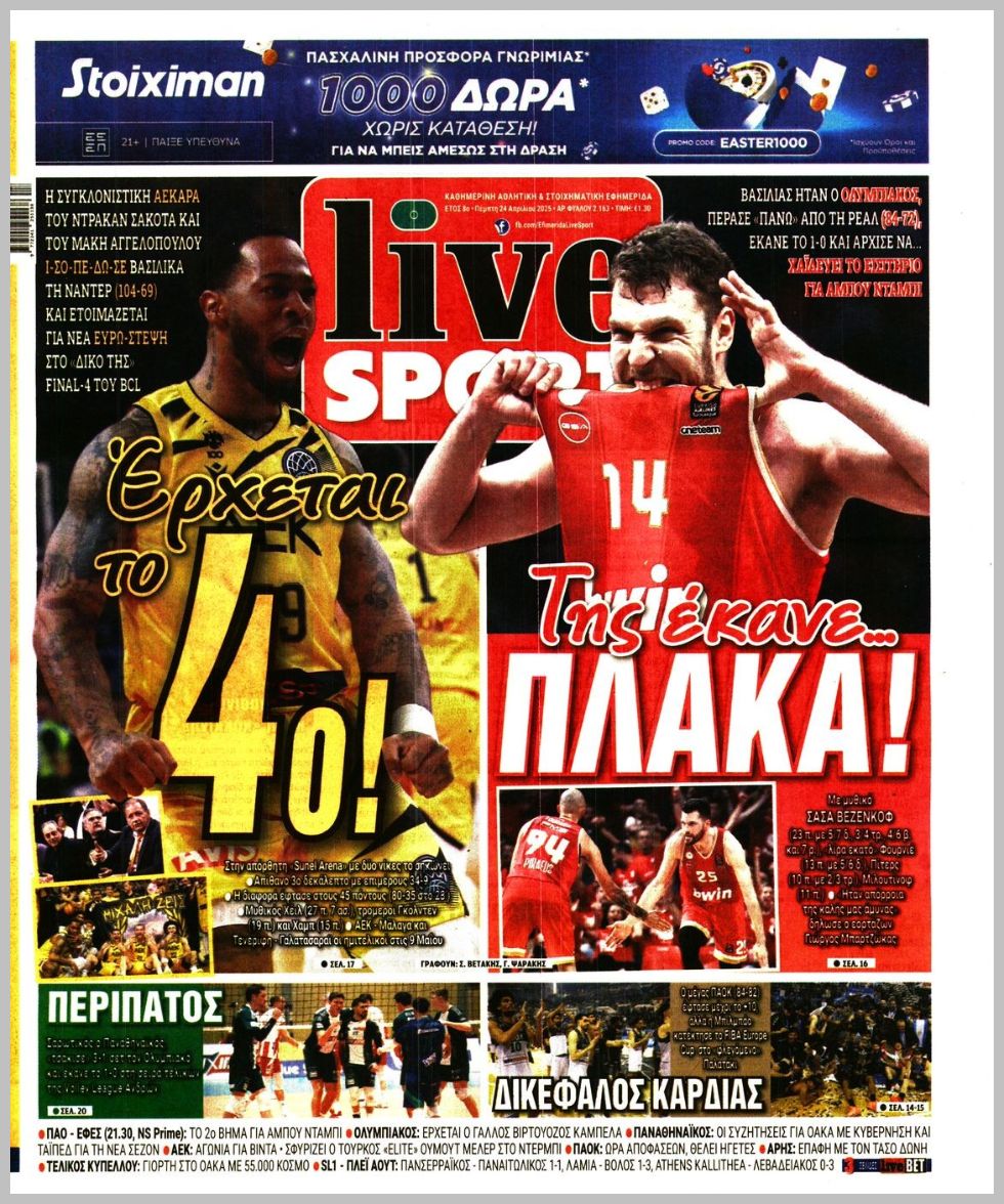 Πρωτοσέλιδα αθλητικών εφημερίδων για την Πέμπτη 24 Απριλίου 2025