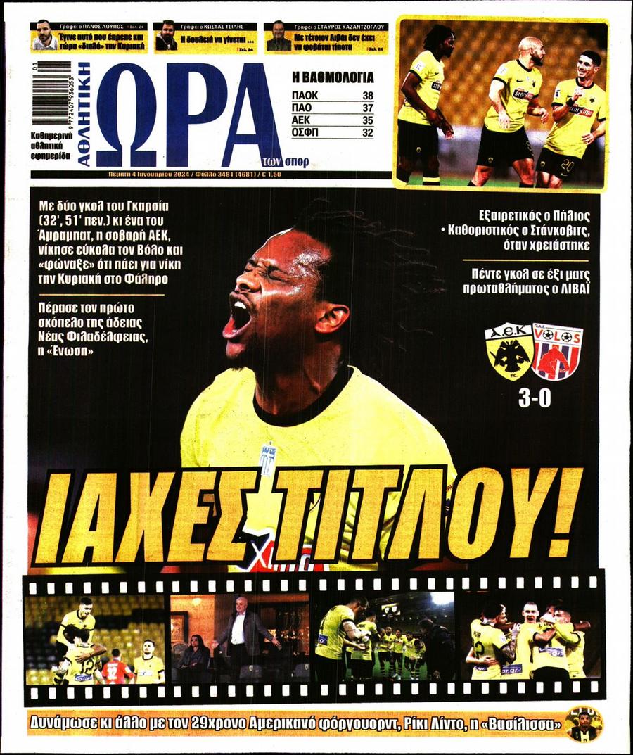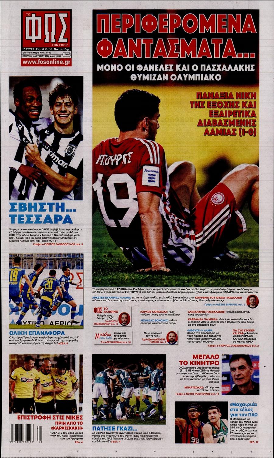 Πρωτοσέλιδα αθλητικών εφημερίδων για την Πέμπτη 4 Ιανουαρίου 2024