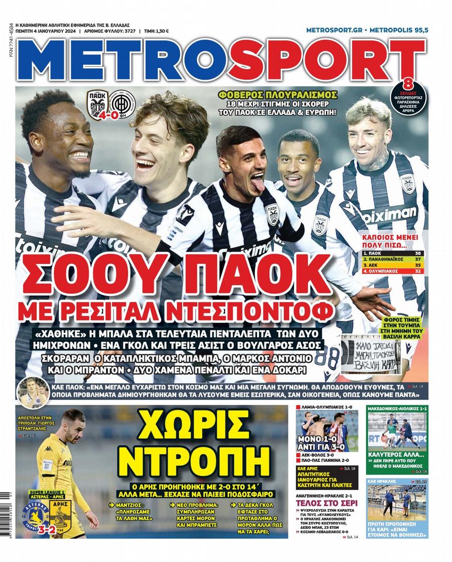 Δείτε αναλυτικά τι αναφέρουν τα πρωτοσέλιδα των αθλητικών εφημερίδων για την Πέμπτη 4 Ιανουαρίου 2024.