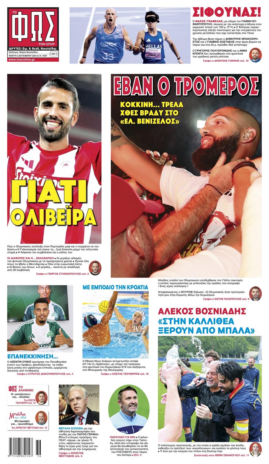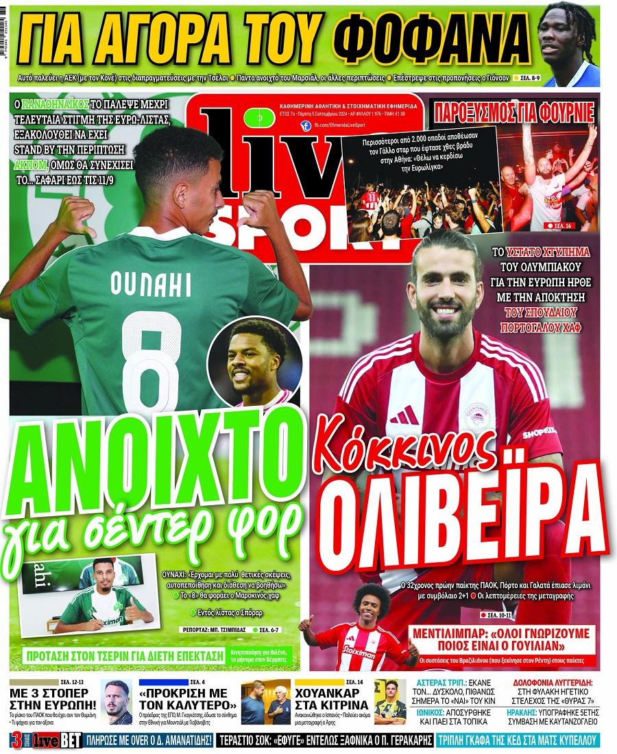 Πρωτοσέλιδα αθλητικών εφημερίδων για την Πέμπτη 5 Σεπτεμβρίου 2024