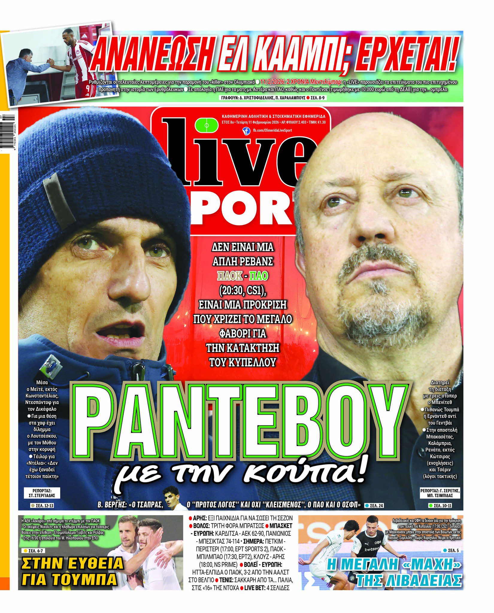 Πρωτοσέλιδα αθλητικών εφημερίδων για την Τεταρτη 11 Φεβρουαρίου 2026