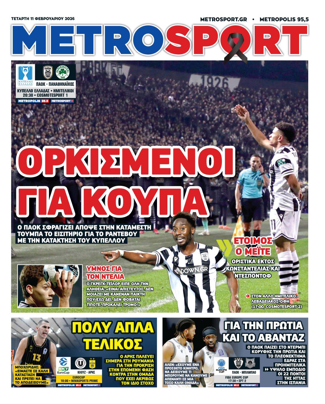 Πρωτοσέλιδα αθλητικών εφημερίδων για την Τεταρτη 11 Φεβρουαρίου 2026.