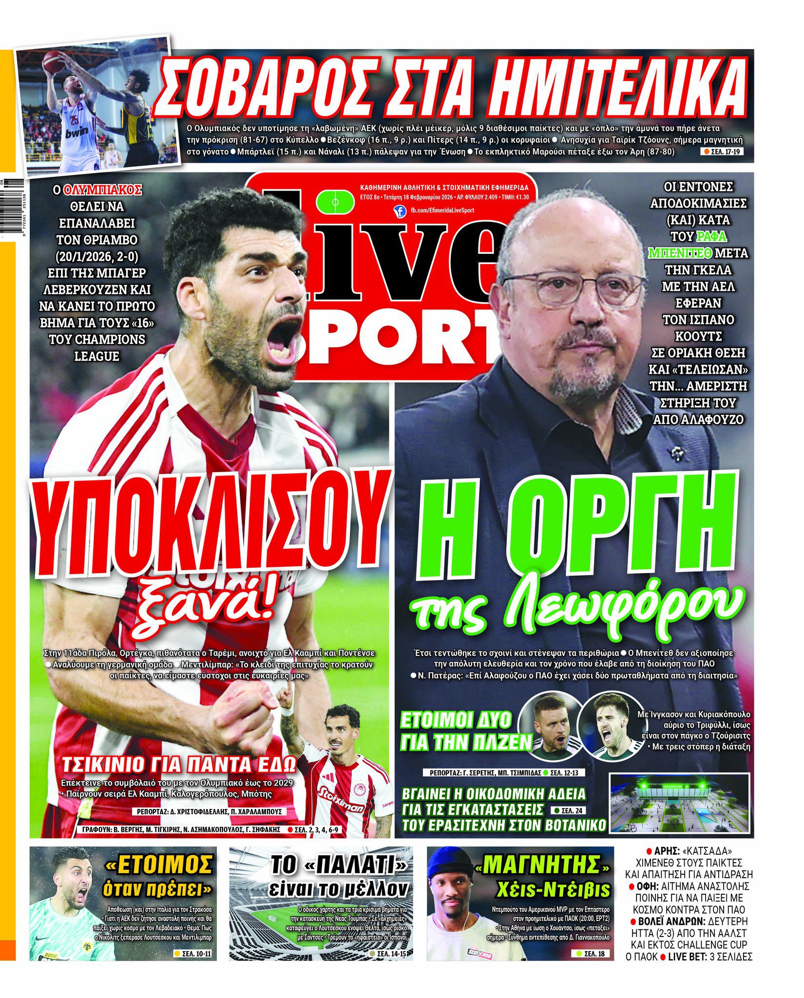 Πρωτοσέλιδα αθλητικών εφημερίδων για την Τετάρτη 18 Φεβρουαρίου 2026