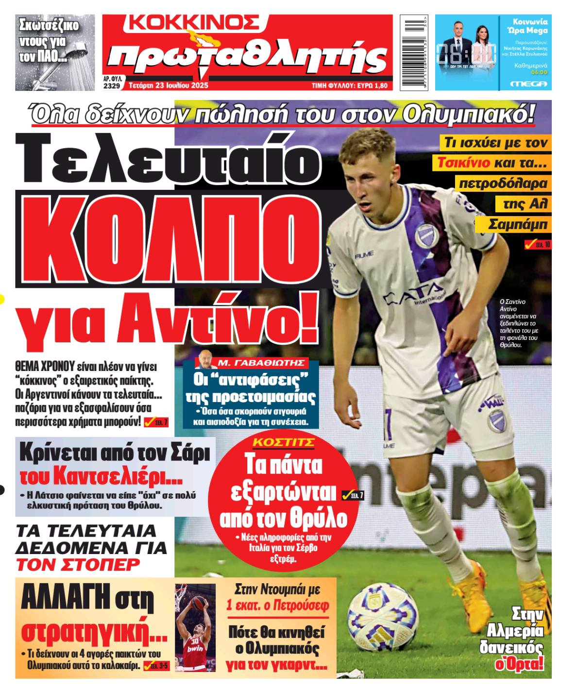 Πρωτοσέλιδα αθλητικών εφημερίδων για την Τετάρτη 23 Ιουλίου 2025