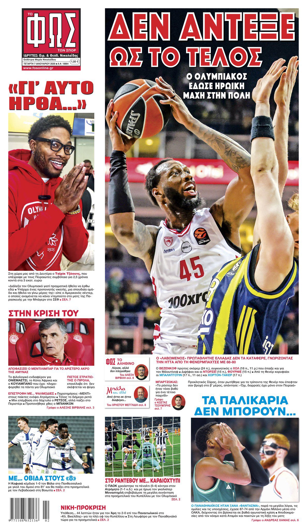 Πρωτοσέλιδα αθλητικών εφημερίδων για την Τετάρτη 7 Ιανουαρίου 2026