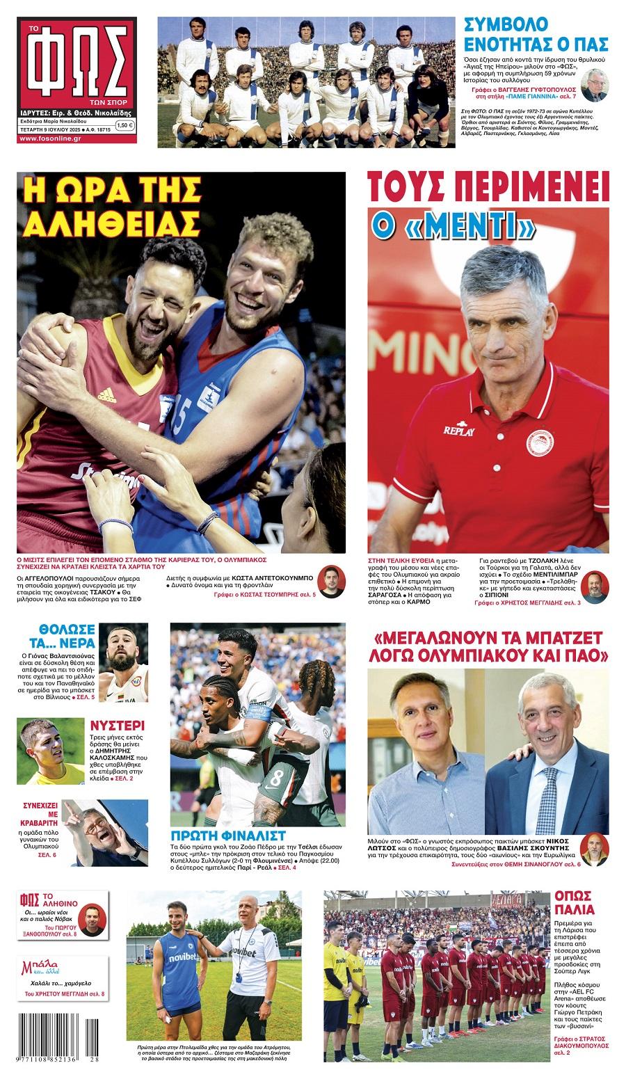 Πρωτοσέλιδα αθλητικών εφημερίδων για την Τετάρτη 9 Ιουλίου 2025