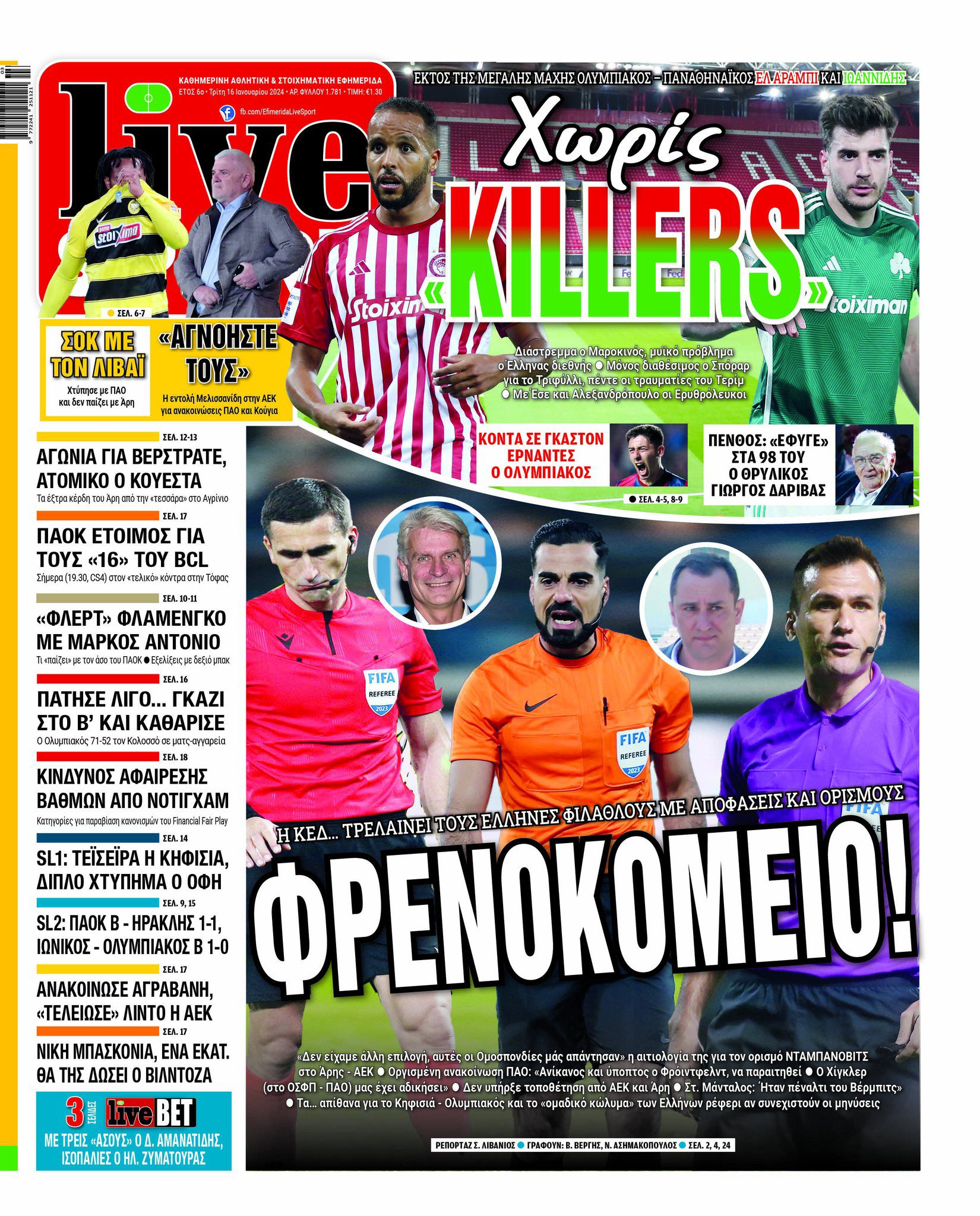 Πρωτοσέλιδα αθλητικών εφημερίδων για την Τρίτη 16 Ιανουαρίου 2024