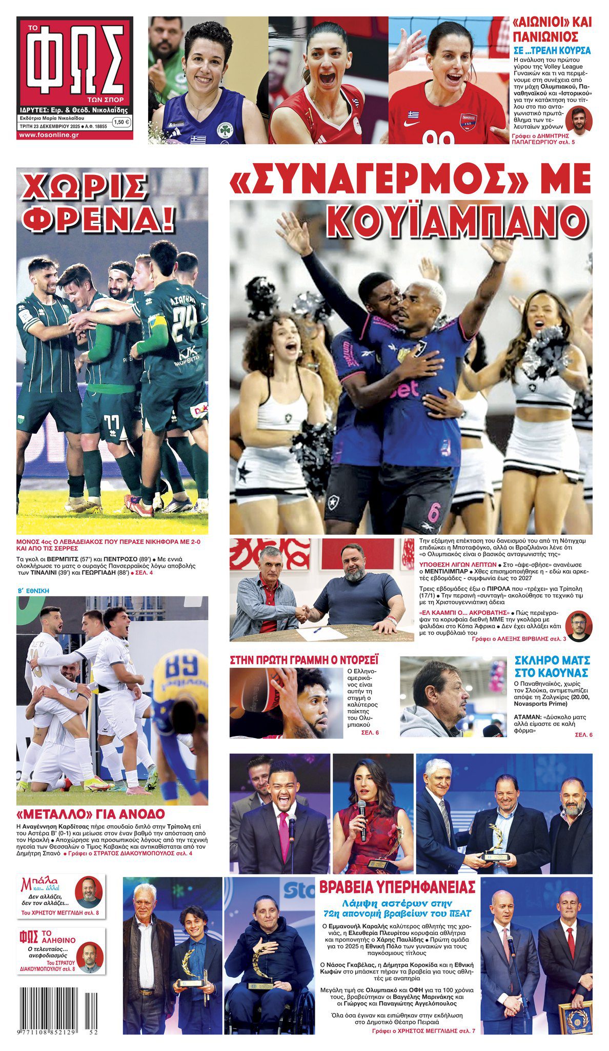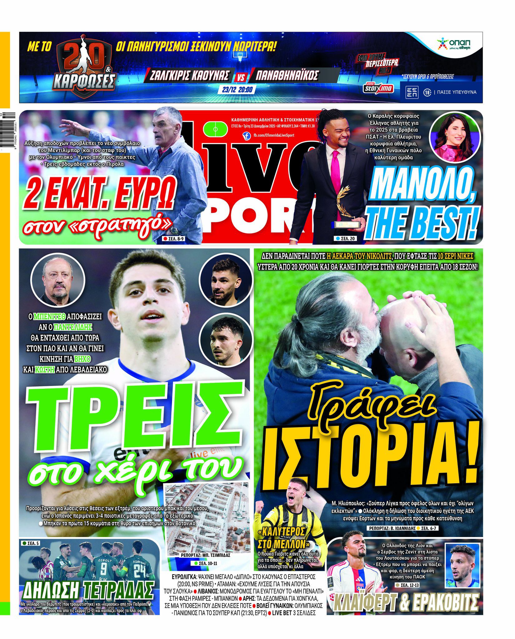 Πρωτοσέλιδα αθλητικών εφημερίδων για την Τρίτη 23 Δεκεμβρίου 2025.