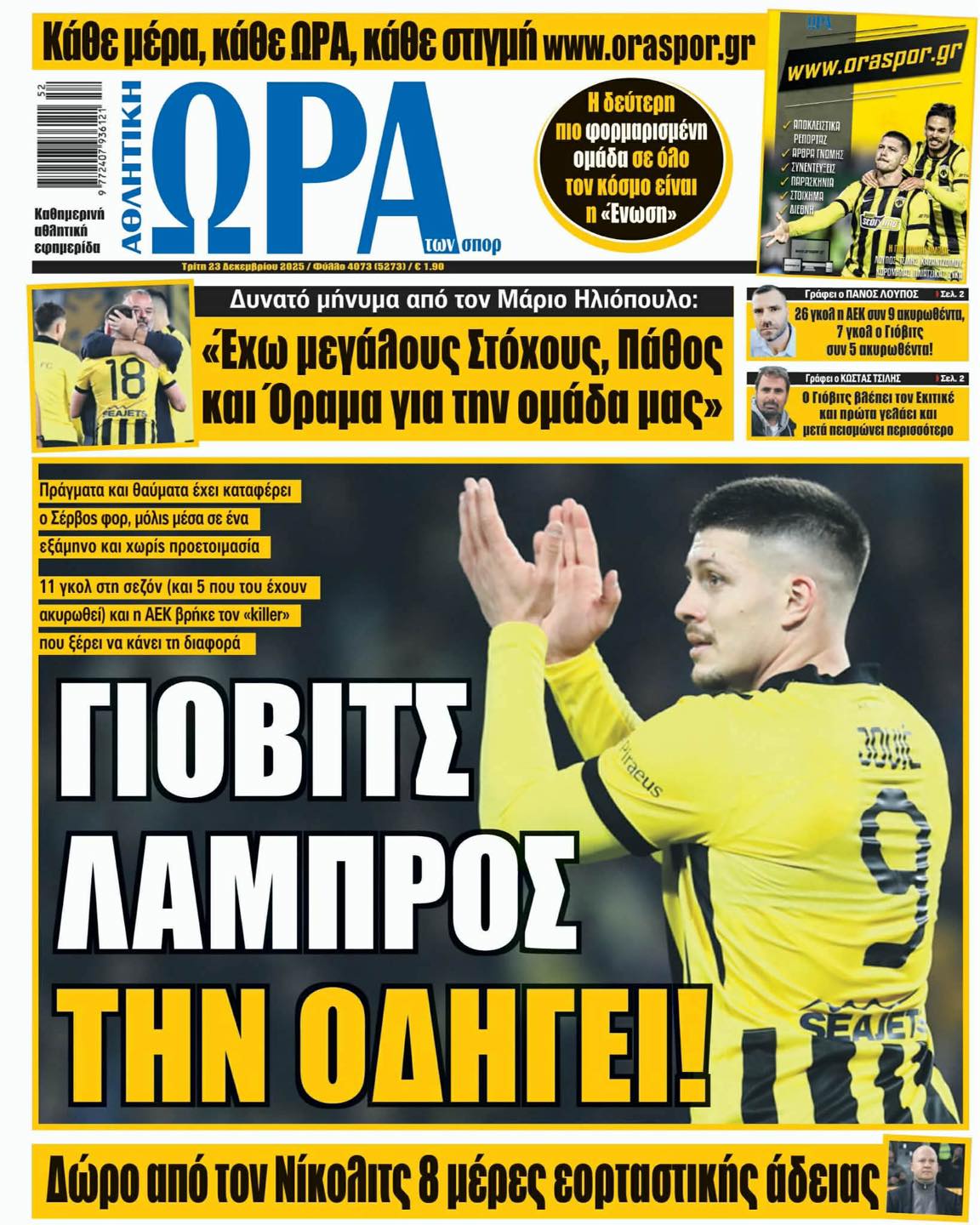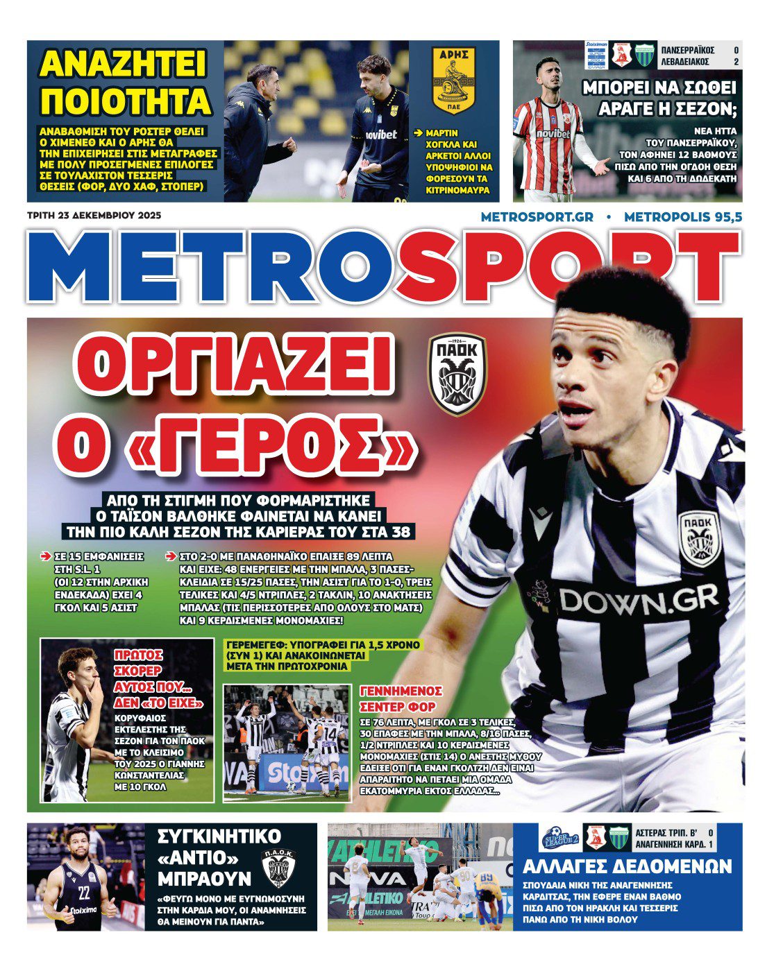 Πρωτοσέλιδα αθλητικών εφημερίδων για την Τρίτη 23 Δεκεμβρίου 2025