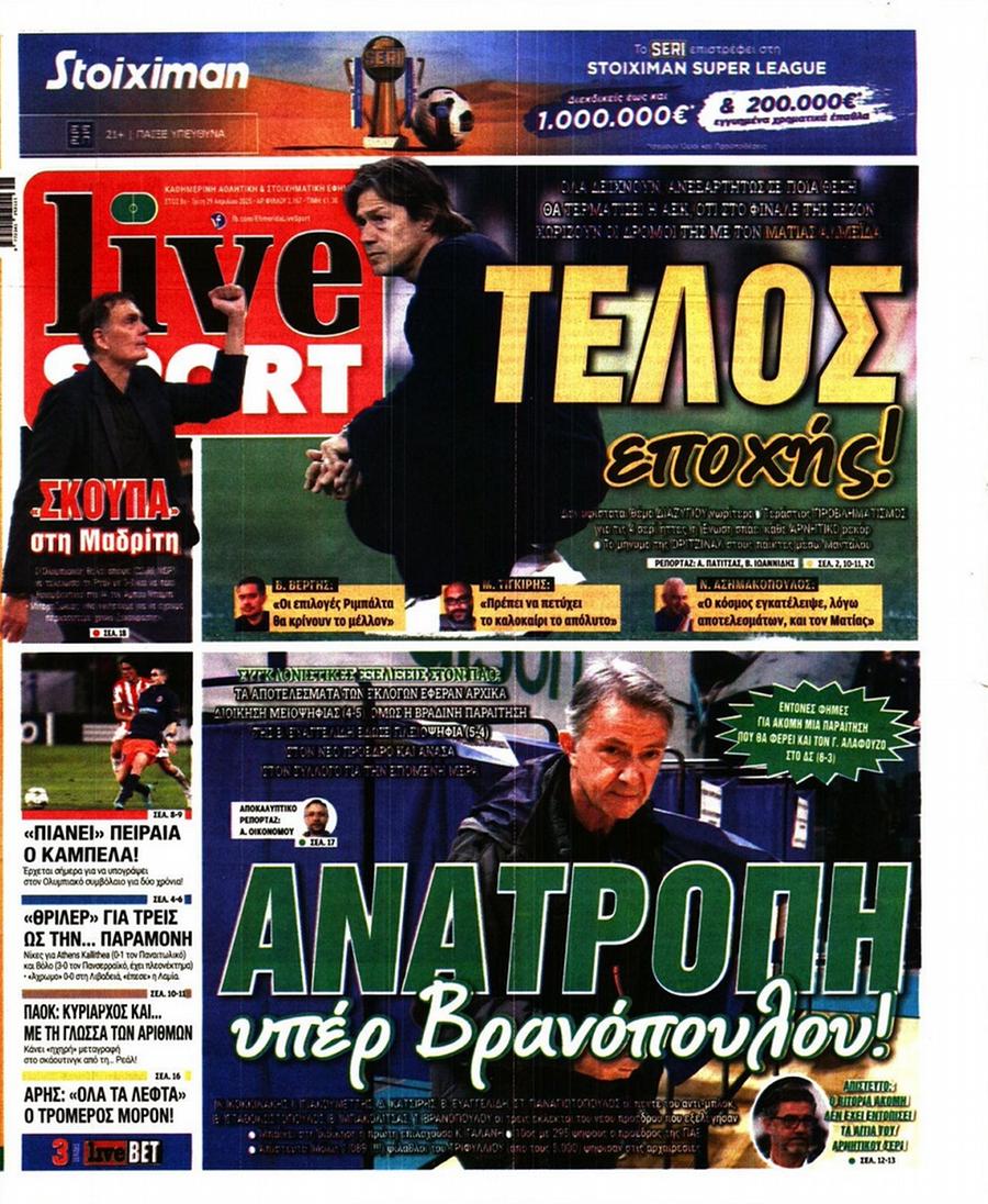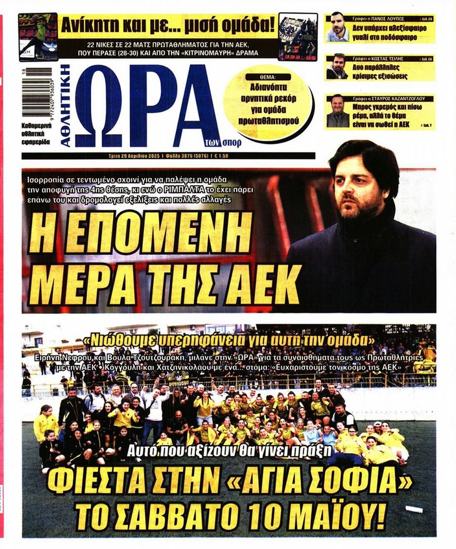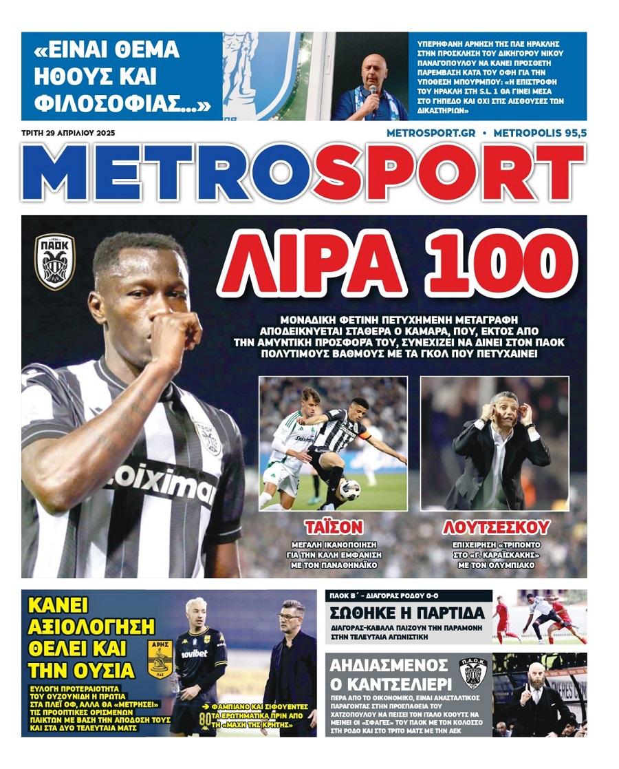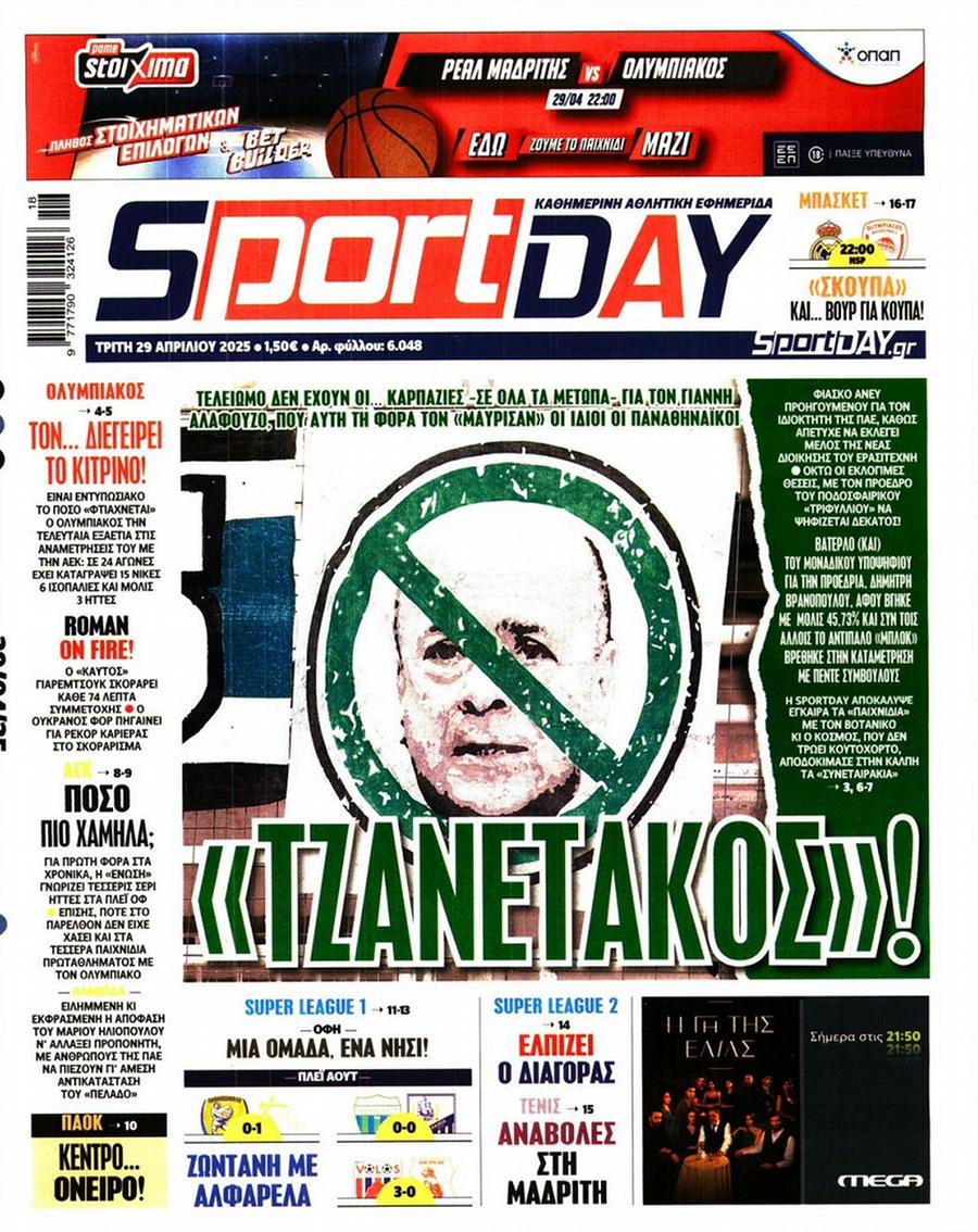 Πρωτοσέλιδα αθλητικών εφημερίδων για την Τρίτη 29 Απριλίου 2025