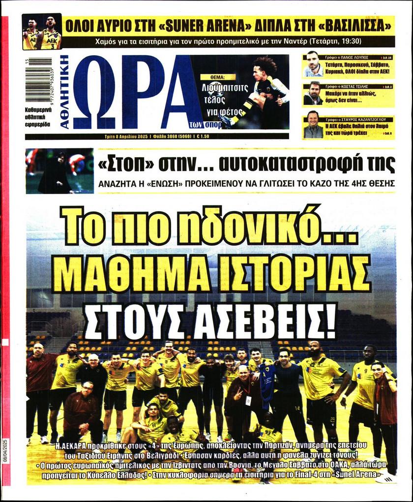 Πρωτοσέλιδα αθλητικών εφημερίδων για την Τρίτη 8 Απριλίου 2025