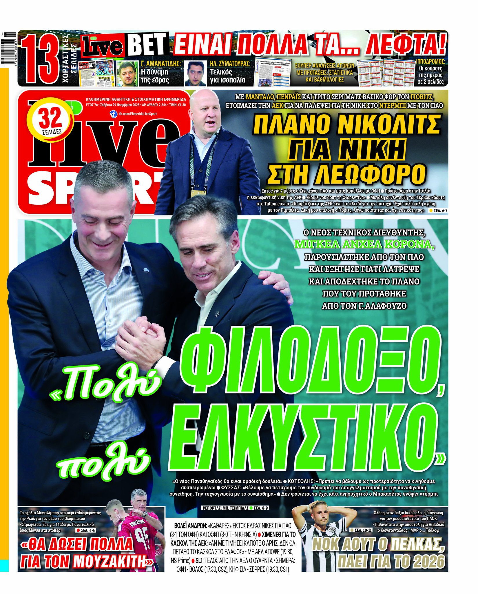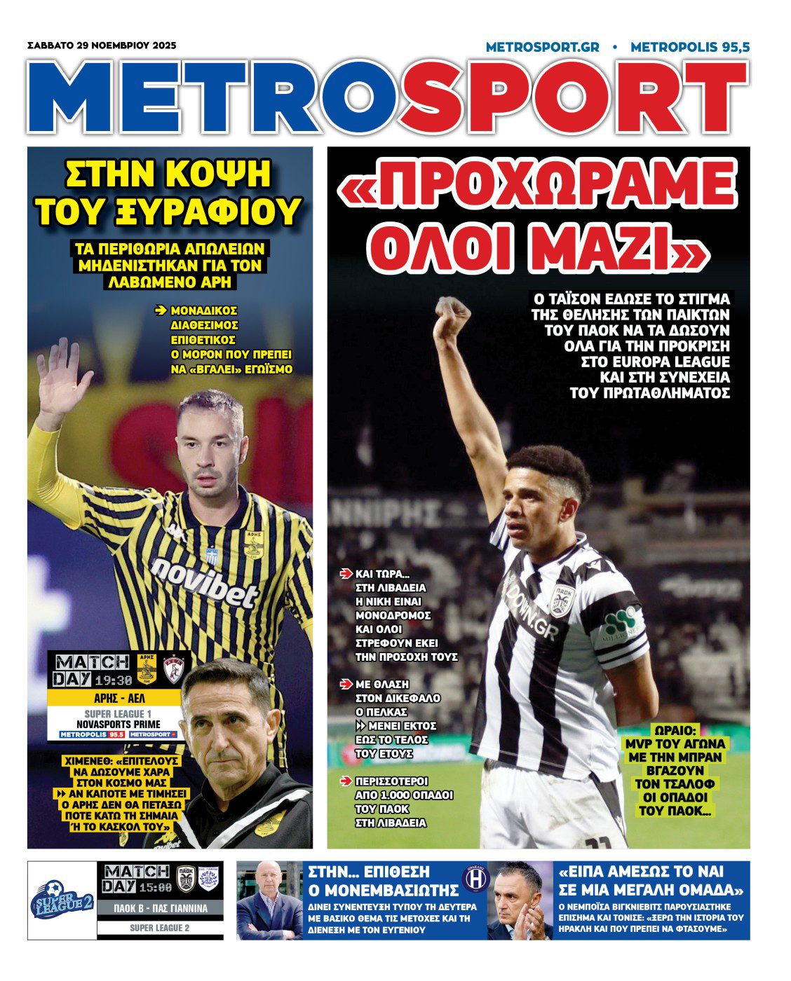Πρωτοσέλιδα αθλητικών εφημερίδων για το Σάββατο 29 Νοεμβρίου 2025