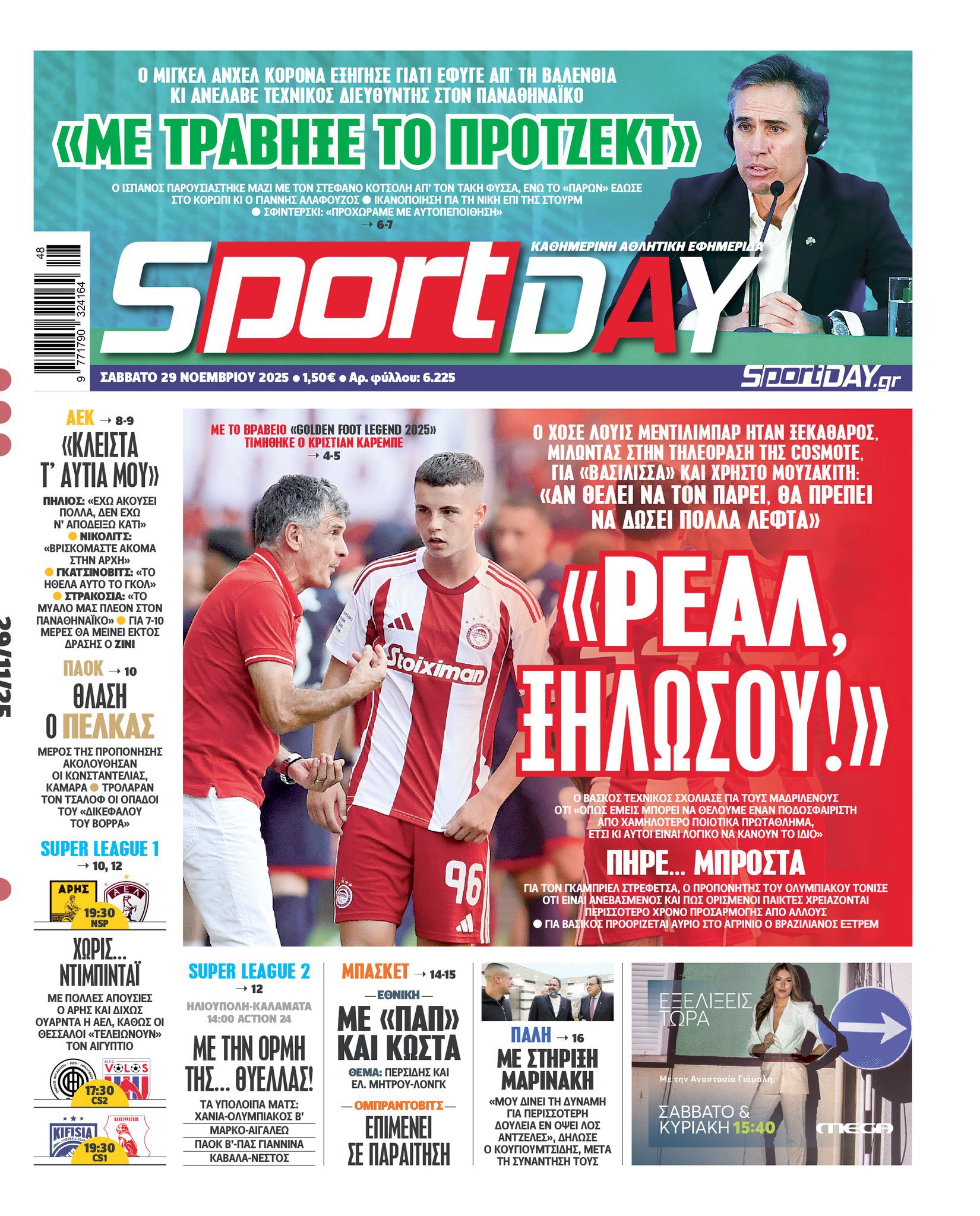 Πρωτοσέλιδα αθλητικών εφημερίδων για το Σάββατο 29 Νοεμβρίου 2025.