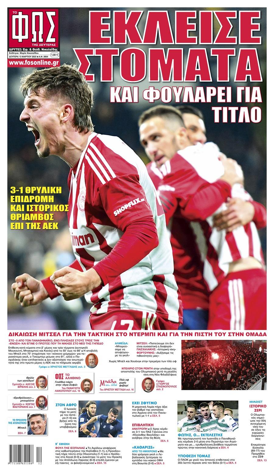 Πρωτοσέλιδα αθλητικών εφημερίδων για τη Δευτέρα 13 Μαρτίου 2023. Δείτε αναλυτικά τι αναφέρουν στη… βιτρίνα τους οι εφημερίδες.