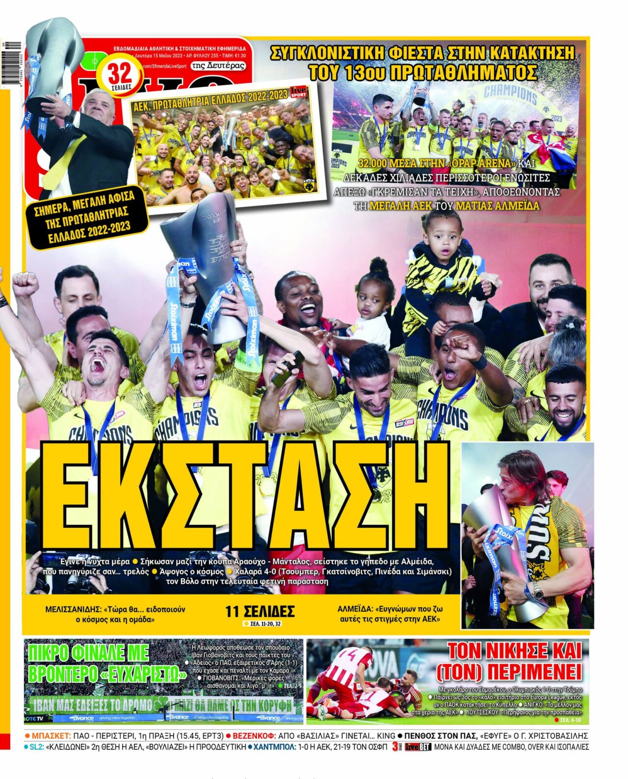 Πρωτοσέλιδα αθλητικών εφημερίδων για τη Δευτέρα 15 Μαΐου 2023. Δείτε αναλυτικά τι αναφέρουν στη… βιτρίνα τους οι εφημερίδες.
