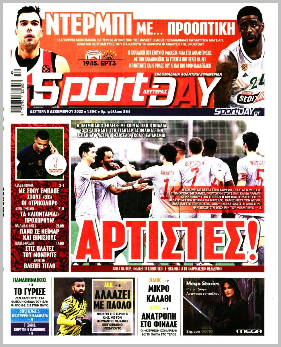Πρωτοσέλιδα αθλητικών εφημερίδων για τη Δευτέρα 5 Δεκεμβρίου 2022. Δείτε αναλυτικά τι αναφέρουν στη… βιτρίνα τους οι εφημερίδες.