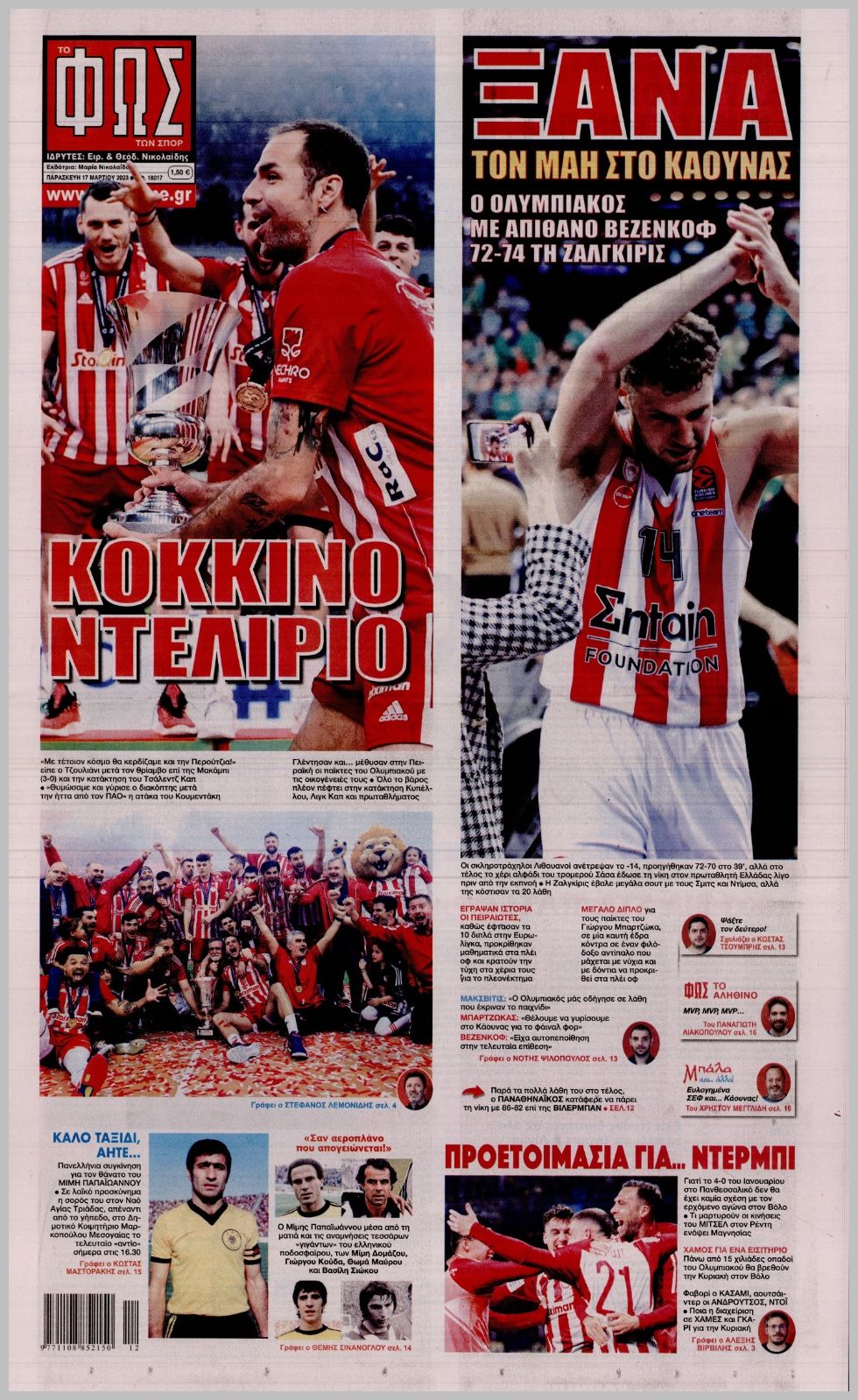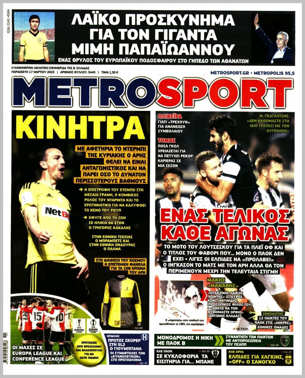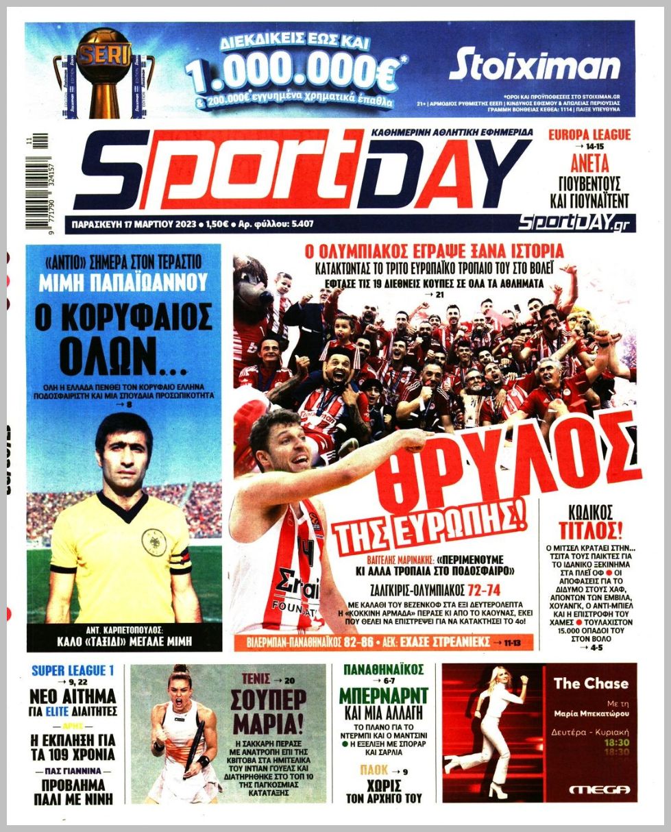 Πρωτοσέλιδα αθλητικών εφημερίδων για την Παρασκευή 17 Μαρτίου 2023. Δείτε αναλυτικά τι αναφέρουν στη… βιτρίνα τους οι εφημερίδες.