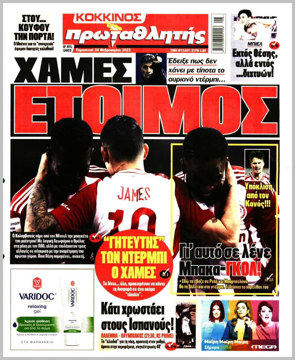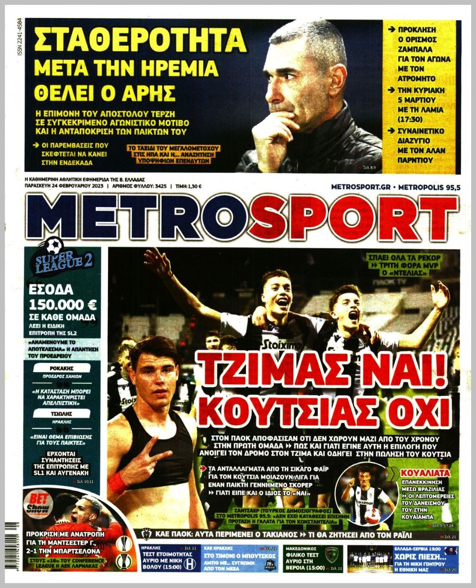 Πρωτοσέλιδα αθλητικών εφημερίδων για την Παρασκευή 24 Φεβρουαρίου 2023. Δείτε αναλυτικά τι αναφέρουν στη… βιτρίνα τους οι εφημερίδες.