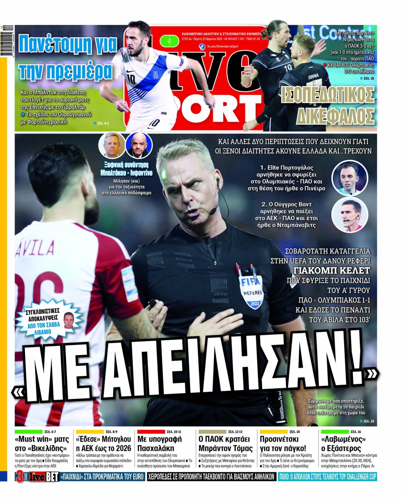 Πρωτοσέλιδα αθλητικών εφημερίδων για την Πέμπτη 23 Μαρτίου 2023. Δείτε αναλυτικά τι αναφέρουν στη… βιτρίνα τους οι εφημερίδες.