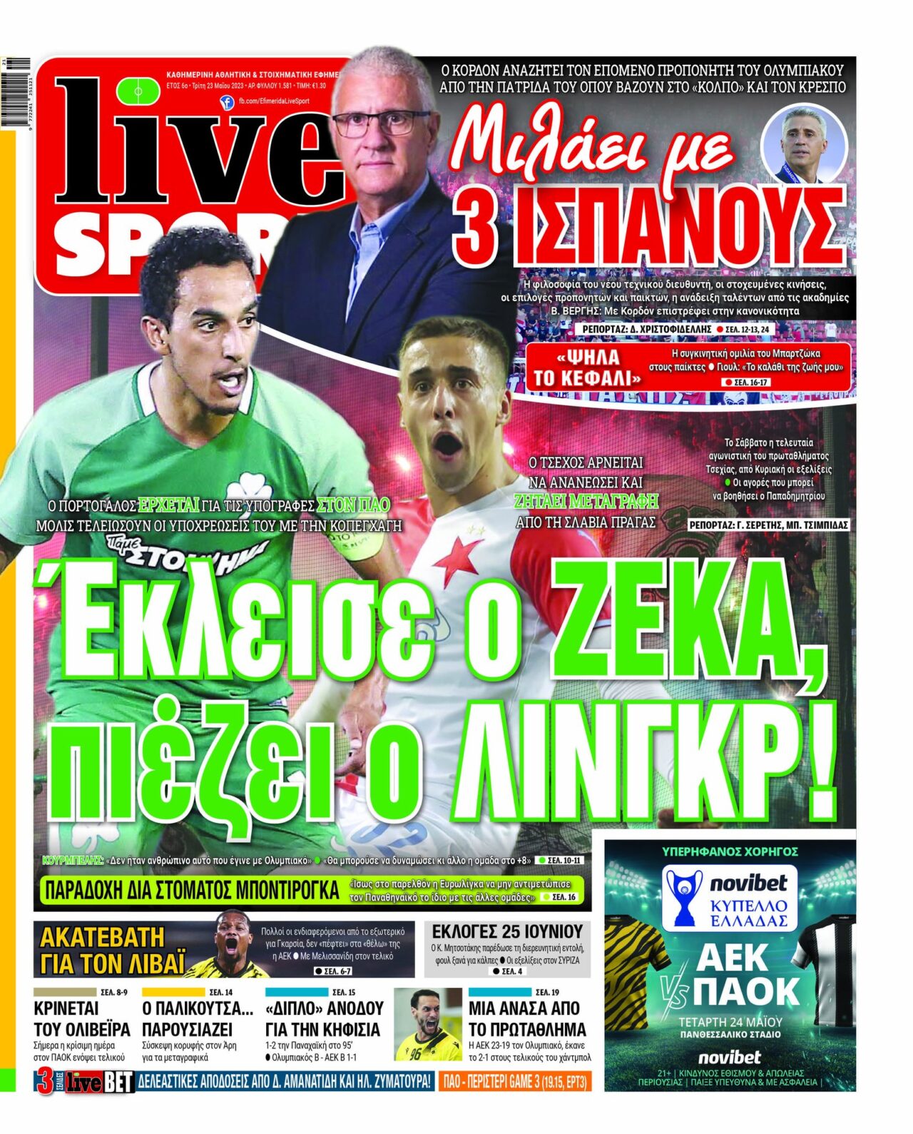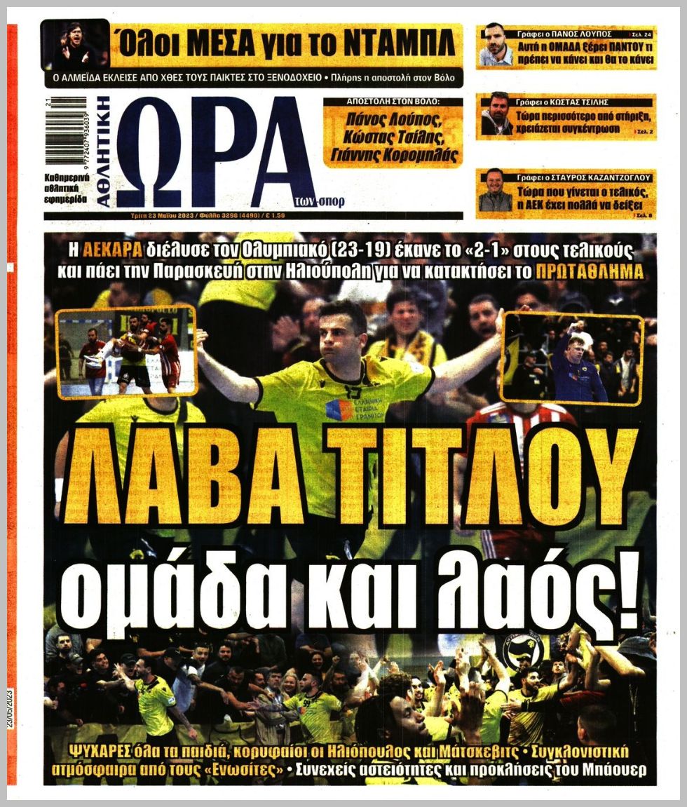 Πρωτοσέλιδα αθλητικών εφημερίδων για την Τρίτη 23 Μαΐου 2023. Δείτε αναλυτικά τι αναφέρουν στη… βιτρίνα τους οι εφημερίδες.