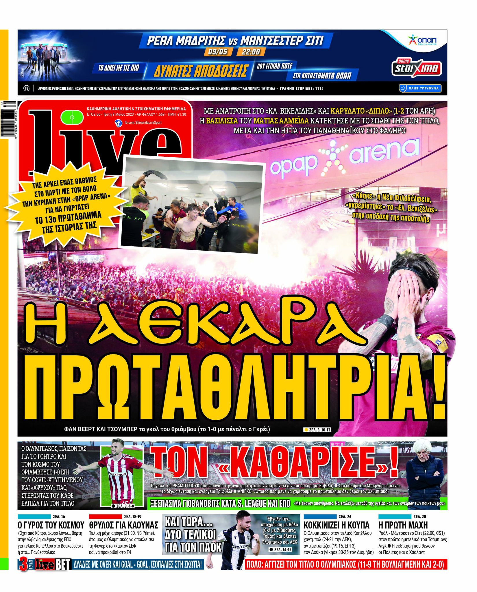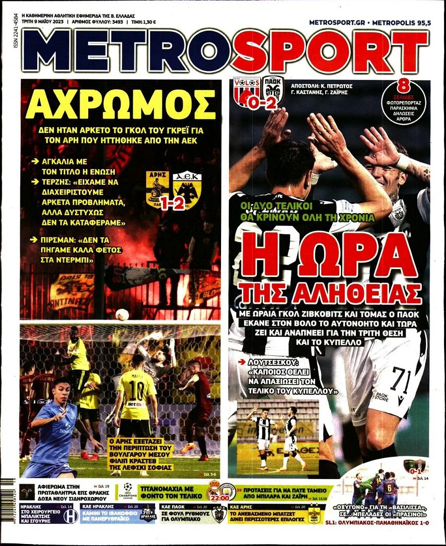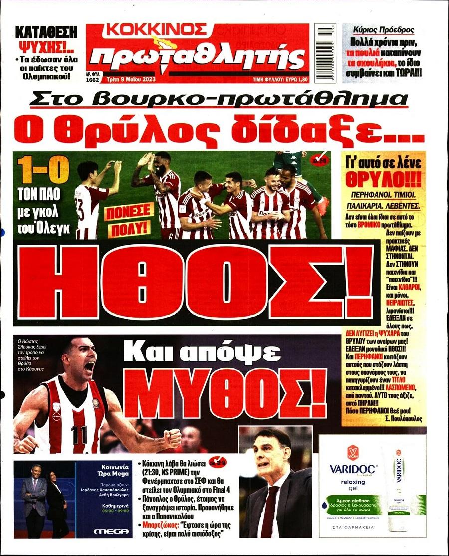 Πρωτοσέλιδα αθλητικών εφημερίδων για την Τρίτη 9 Μαΐου 2023. Δείτε αναλυτικά τι αναφέρουν στη… βιτρίνα τους οι εφημερίδες.