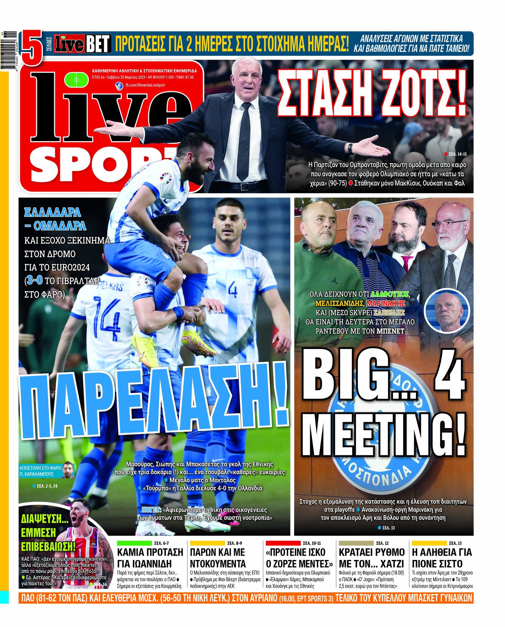 Πρωτοσέλιδα αθλητικών εφημερίδων για το Σάββατο 25 Μαρτίου 2023. Δείτε αναλυτικά τι αναφέρουν στη… βιτρίνα τους οι εφημερίδες.