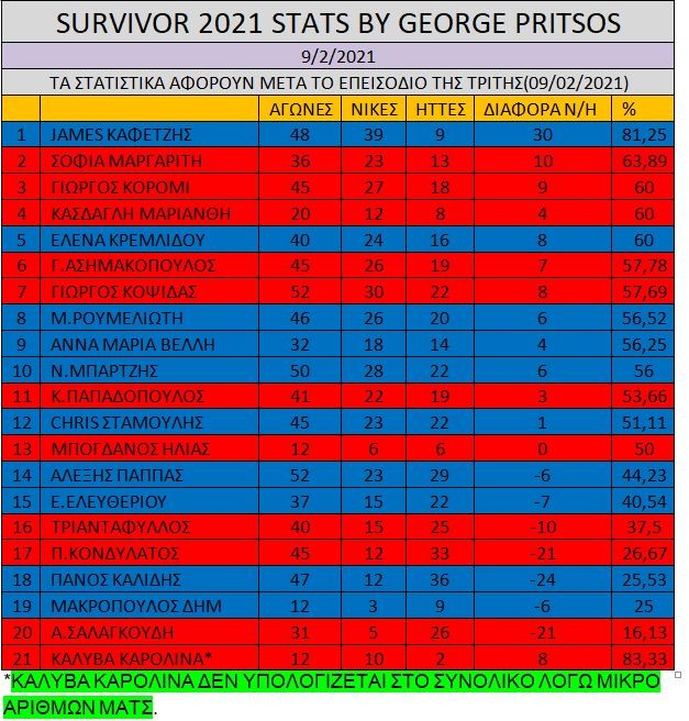Στατιστικά Survivor 10/2