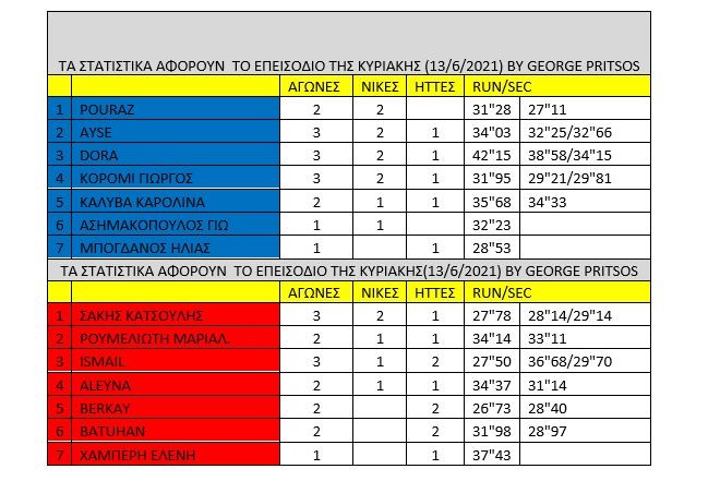 5)Σε 3 αναμετρήσεις στο Survivor είχαμε 2 νίκες των κόκκινων σε flag race!και 1 νίκη από τους μπλε.