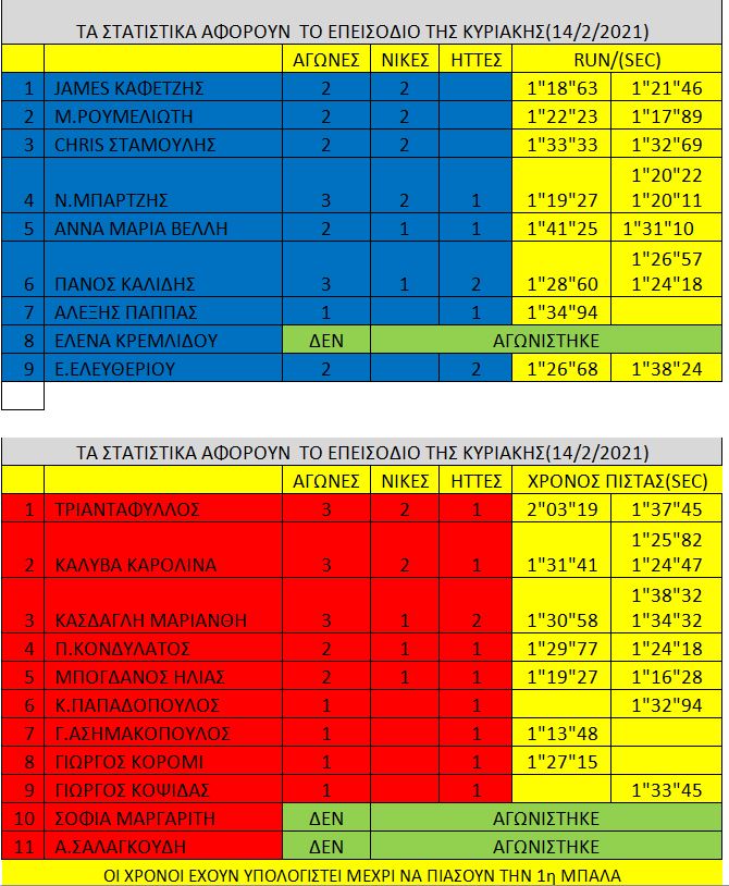 Πάμε να δούμε και τον συγκεντρωτικό αγωνιστικό ταμπλό