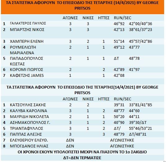 Στατιστικά Survivor 15/4/2021