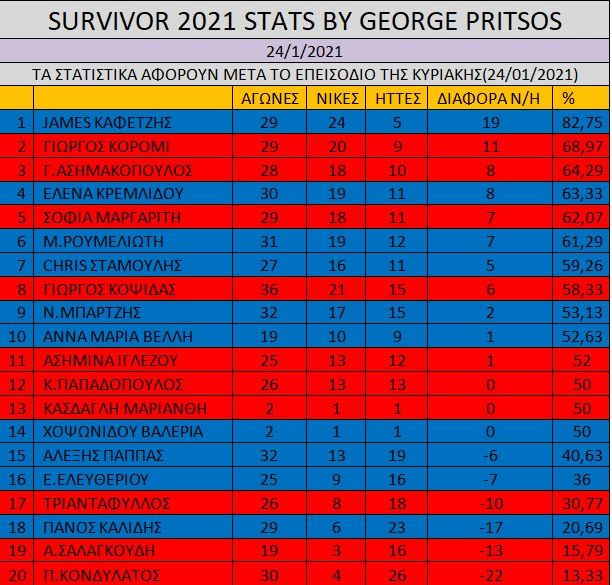 Survivor διαρροή spoiler 25/1: Στατιστικά! Ο Κορόμι… κατάπιε τον Κοψιδά, αλλά δεν έπαιξε! «Βασιλιάς» ο Τζέημς!