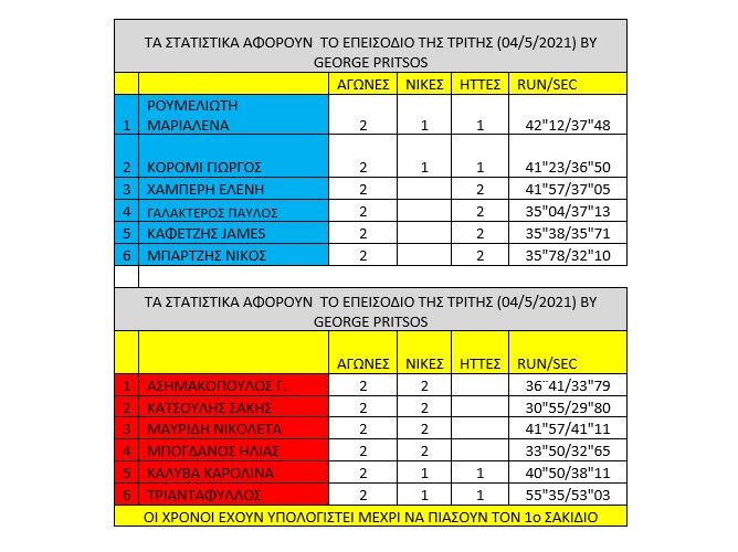 Το αγώνισμα ήταν απολαυστικό για την κόκκινη ομάδα, που έκανε την πιο ολοκληρωμένη αγωνιστική εικόνα στέλνοντας αδιάβαστους την μπλε ομάδα με το εκκωφαντικό 10-2, στο παιχνίδι διαβίωσης που βλέπουμε μέσα από την συχνότητα του ΣΚΑΪ.