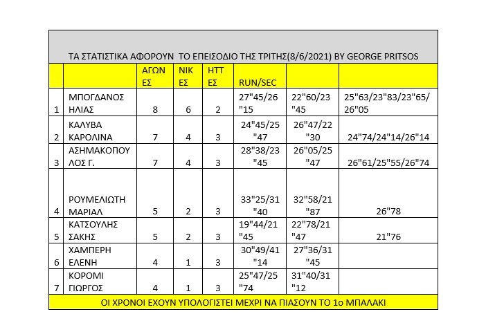 Ωστόσο είχαμε και αλλαγές, αφού ο Ατζούν αποφάσισε οι όροι διεξαγωγής του αγώνα να είναι διαφορετικοί, αφού όποιος έχανε 3 φορές, αυτόματα έμενε εκτός σε σχέση με το χθεσινό επεισόδιο 7/6 που κρινόταν στις 5 ζωές!