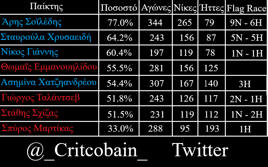 ✅Νίκες/Ήττες απο τα Flag Race του παίκτη στον στόχο.#SurvivorGR pic.twitter.com/ZjOFKRh5Gb