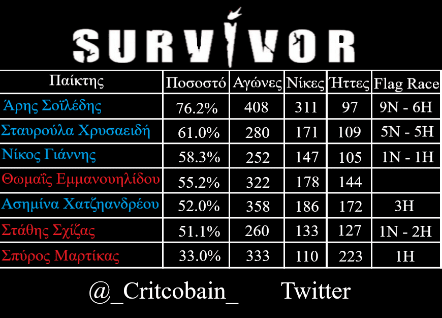 Survivor Διαρροή spoiler Στατιστικά 22/6: Θα στενοχωρήσουμε λίγο τους φαν της Ασημίνας στο Survivor, αλλά έχουμε νέα στατιστικής φύσεως.