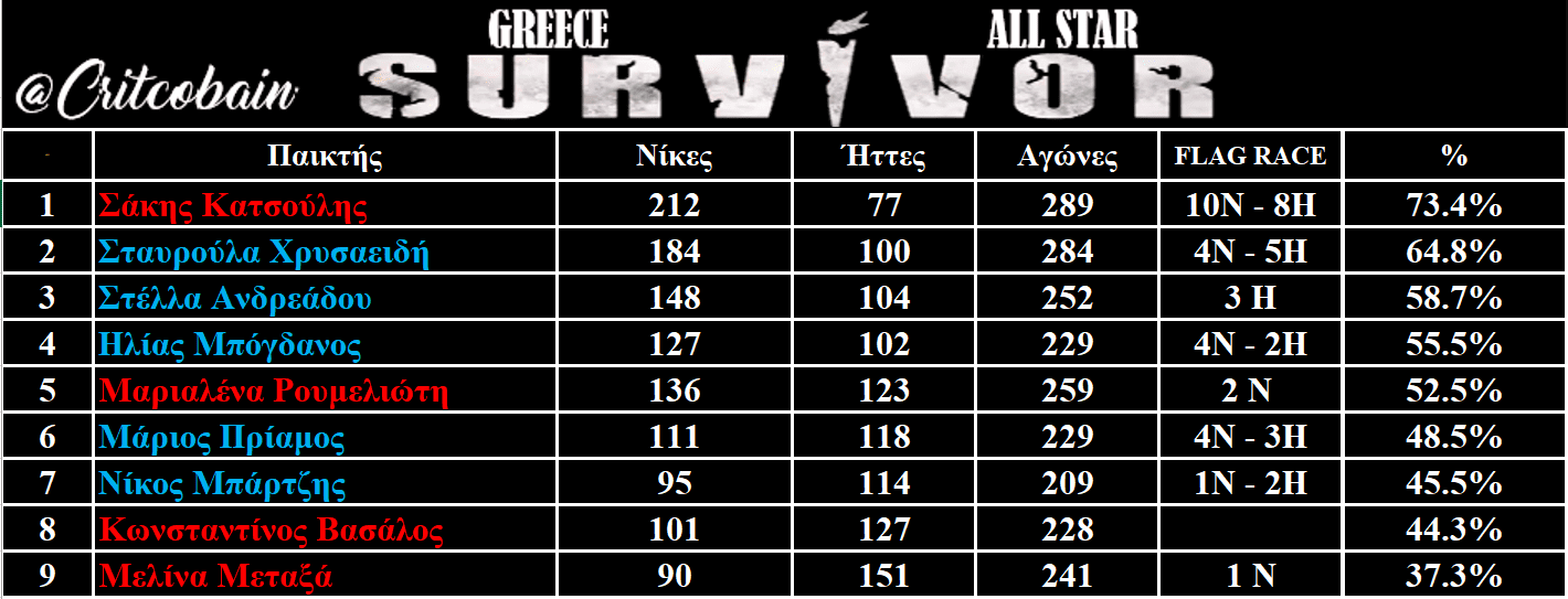 Survivor Στατιστικά 17/6: Ο Πίνακας Στατιστικών