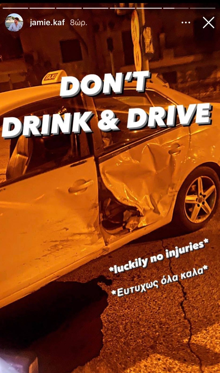 Πιο συγκεκριμένα, ανέβασε μία φωτογραφία με ένα τρακαρισμένο ταξί και μάλιστα έδωσε και το στίγμα του γράφοντας «Μην πίνετε και οδηγάτε».